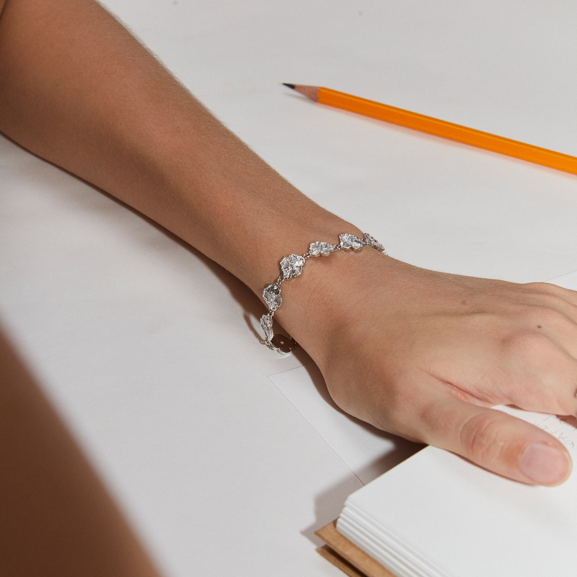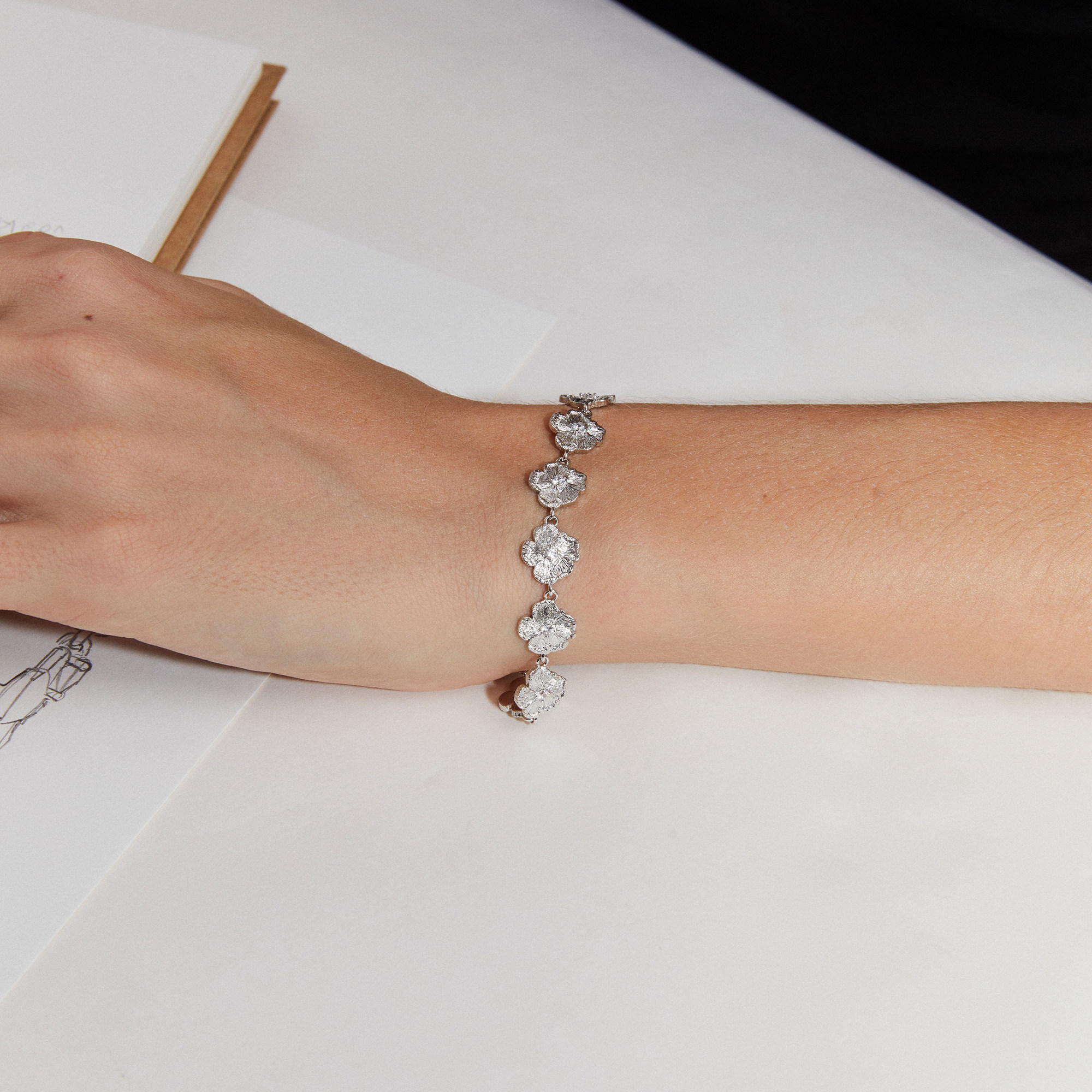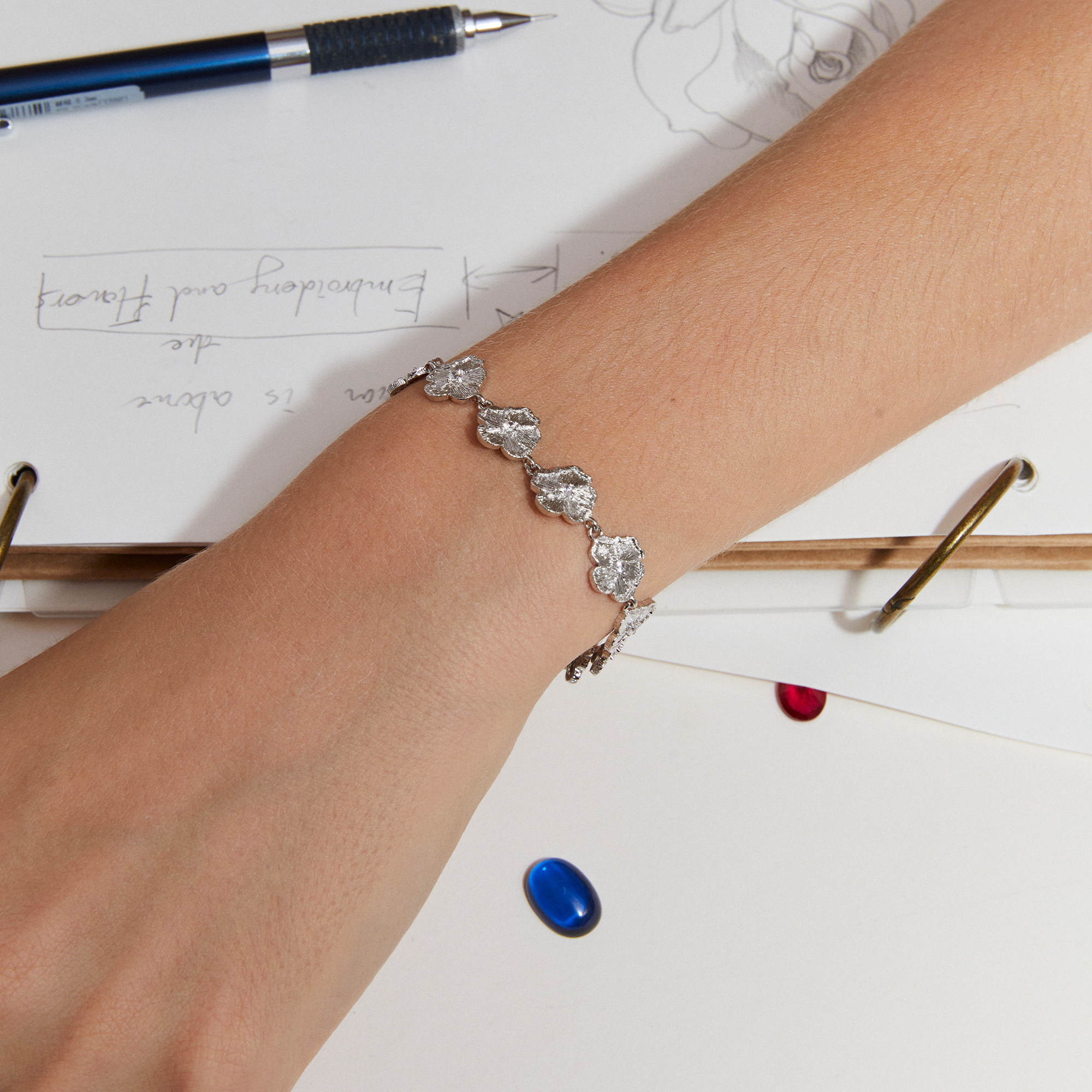 Mouhooland/暮后之地银标限定朱槿花刺绣小花手链925银镶培育钻石