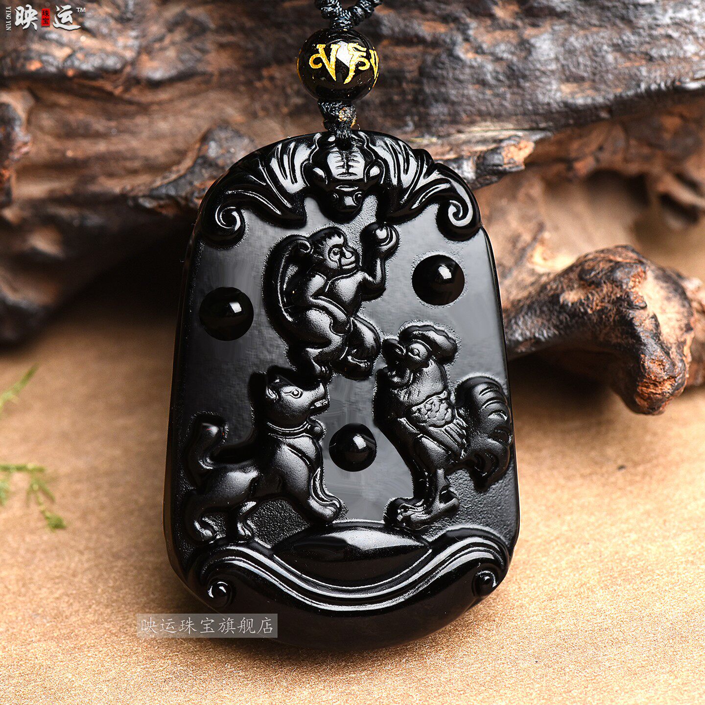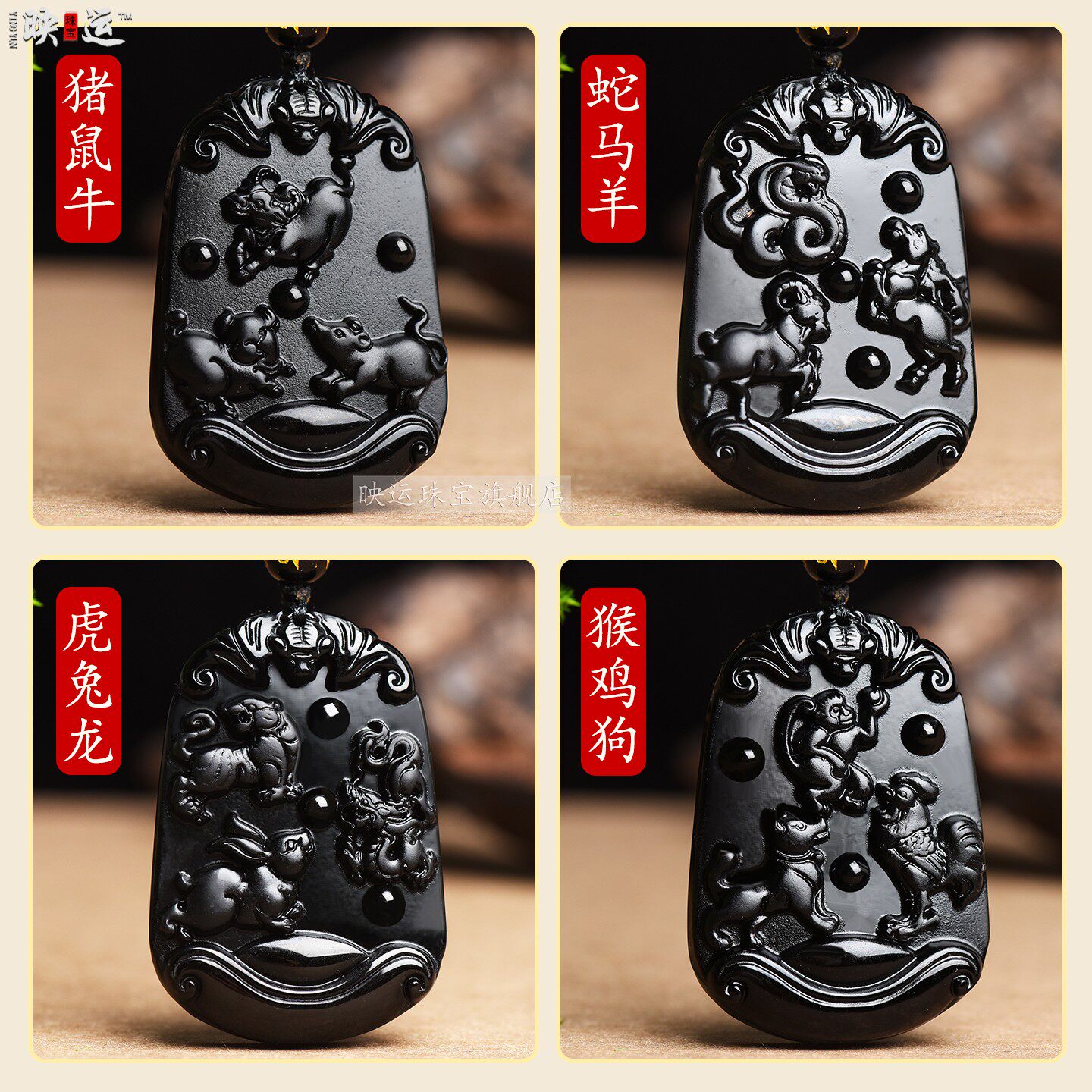 黑曜石亥子丑三会北方水局吊坠巳午未南方火局申酉戍三会西方金局