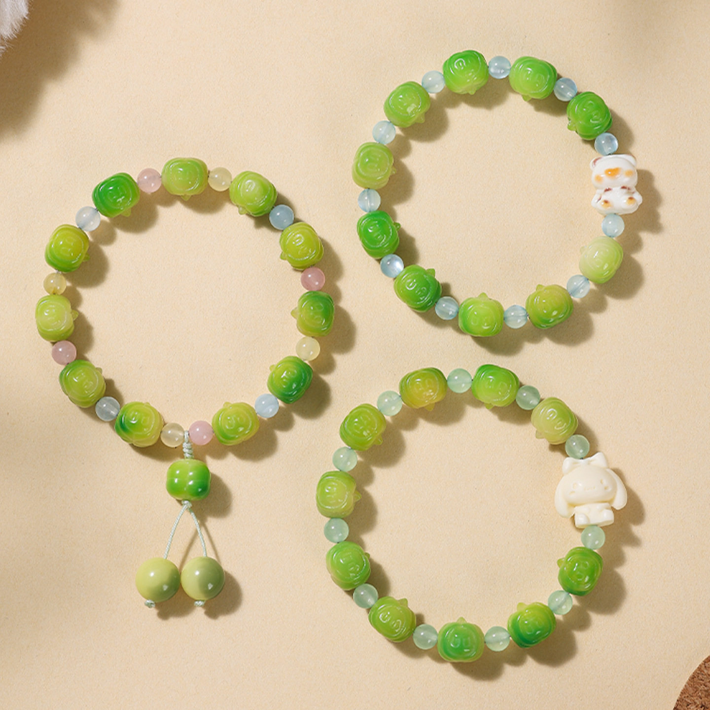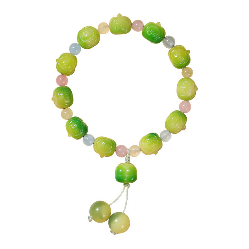新品果绿色菩提手串雕刻南瓜拉布布女生绕指柔可爱文玩佛珠手链