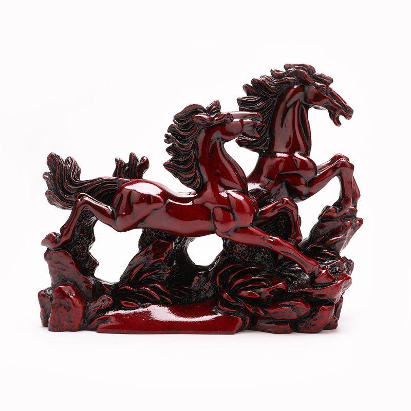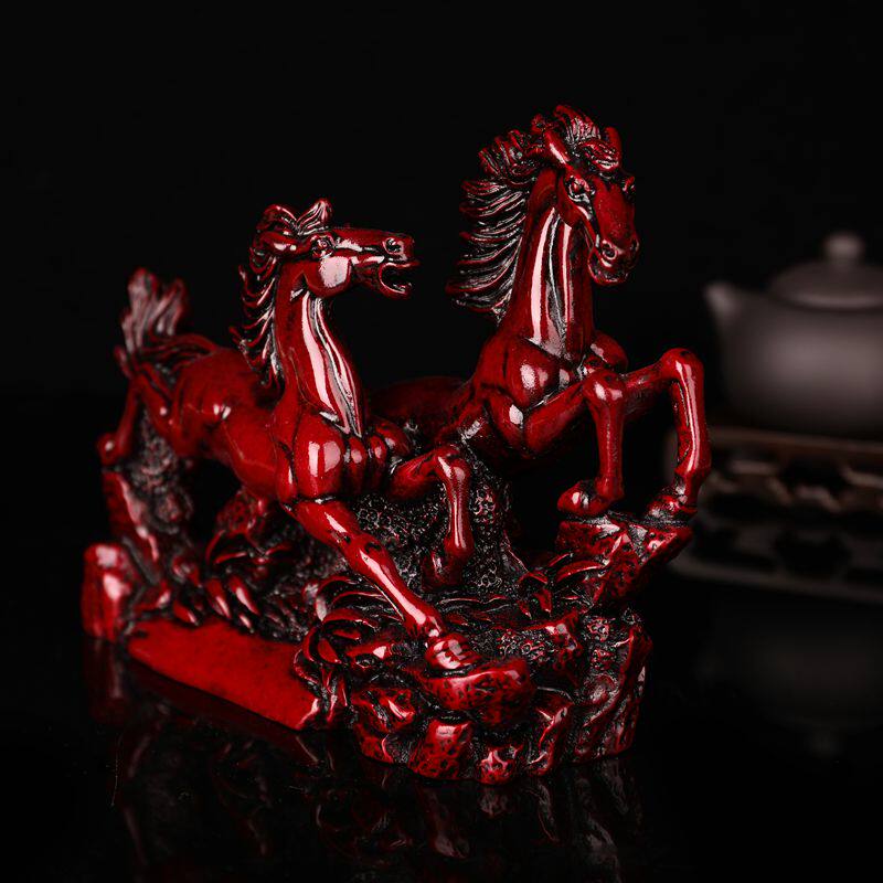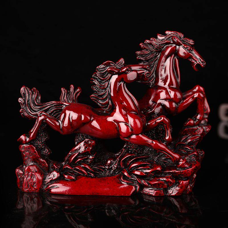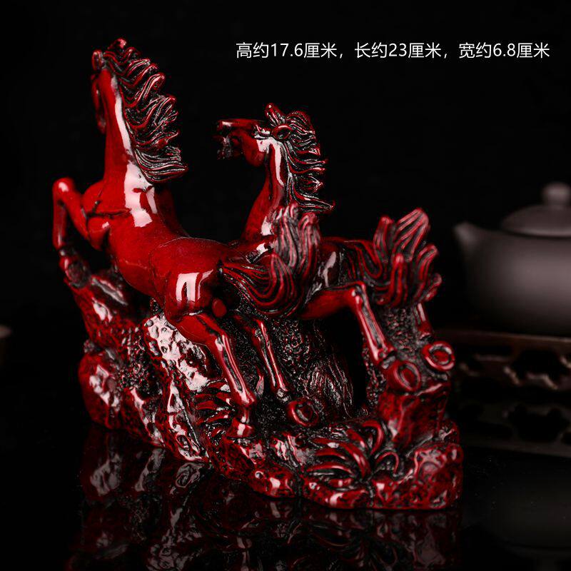 驿马奔腾树脂摆件家居客厅工艺饰品红色骏马双马桌面摆设装饰平安
