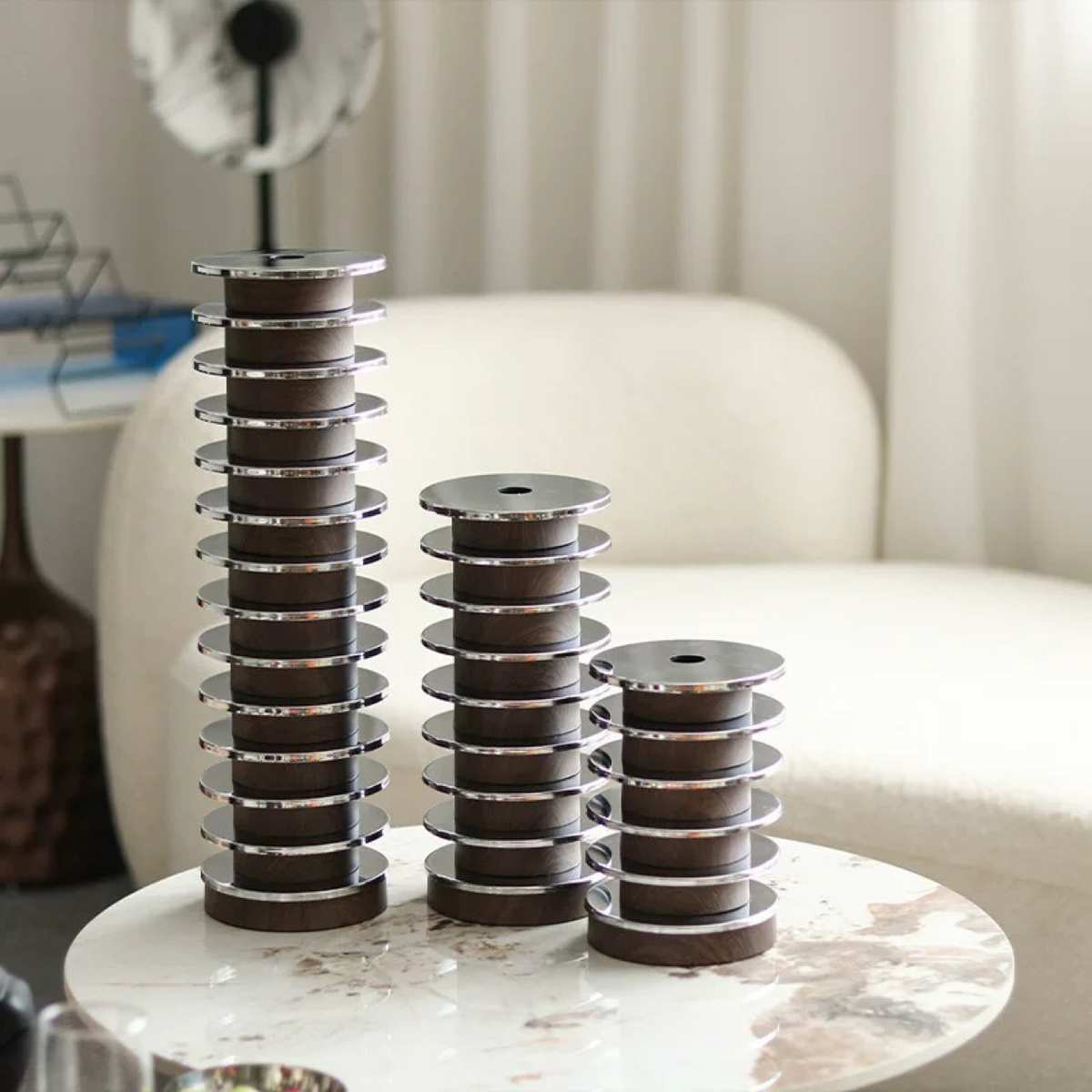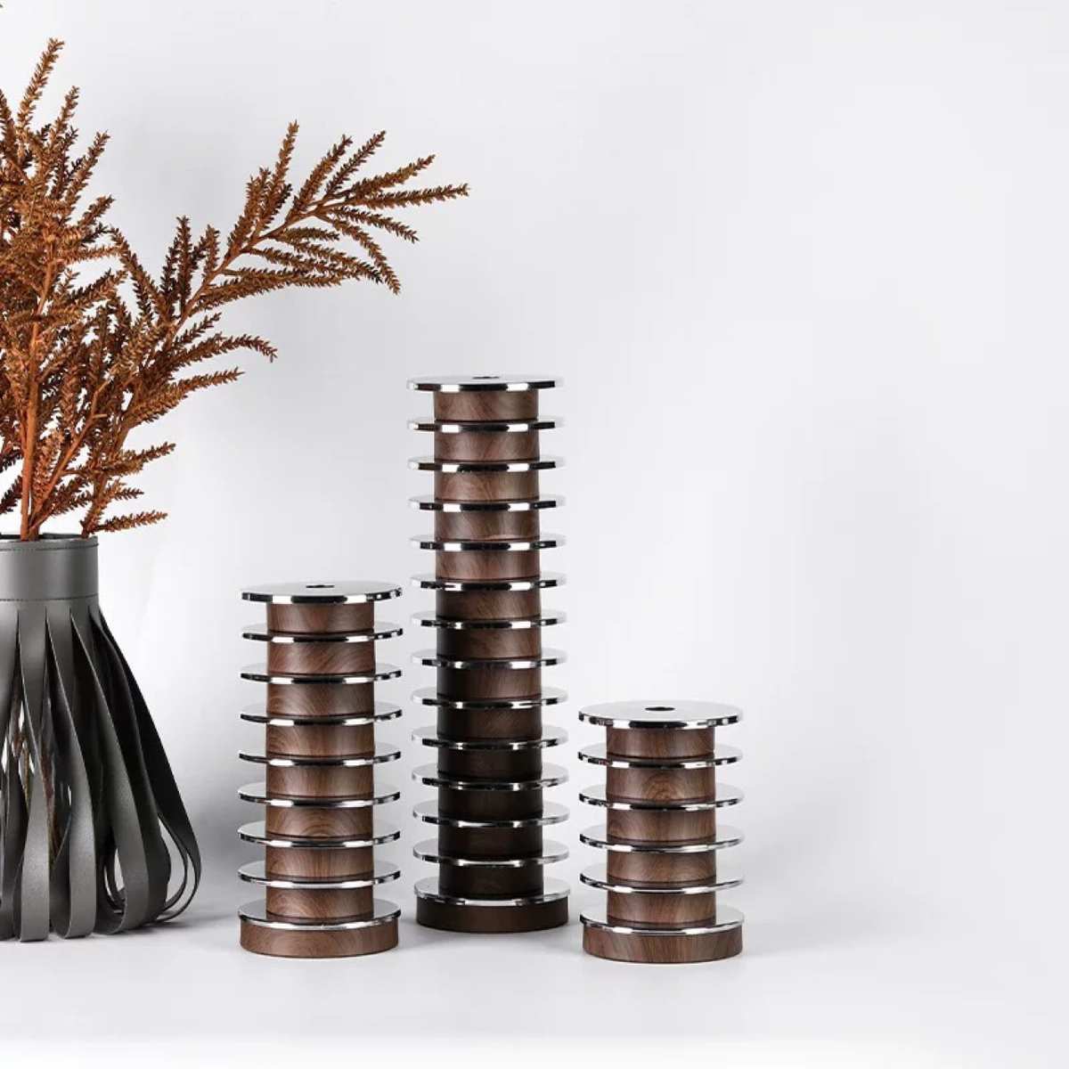 轻奢摆件层叠金属仿实木烛台花器样板间家居售楼部展厅花瓶装饰品