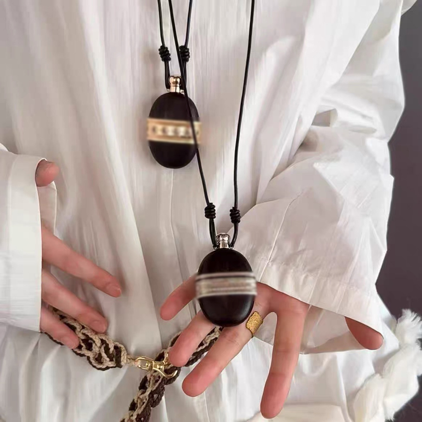 对版现货 黑檀木酒壶项链女小众设计高级感轻奢香水瓶长款毛衣链