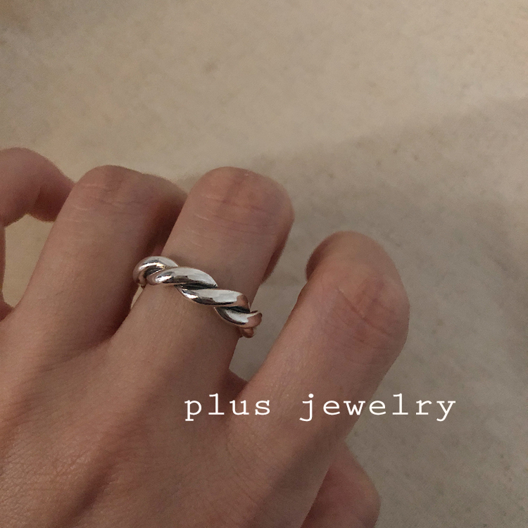 PLUS JEWELRY / 925银开口可调节复古做旧纯银麻花戒指