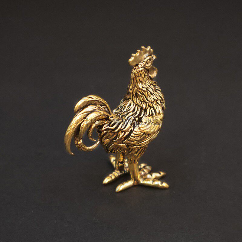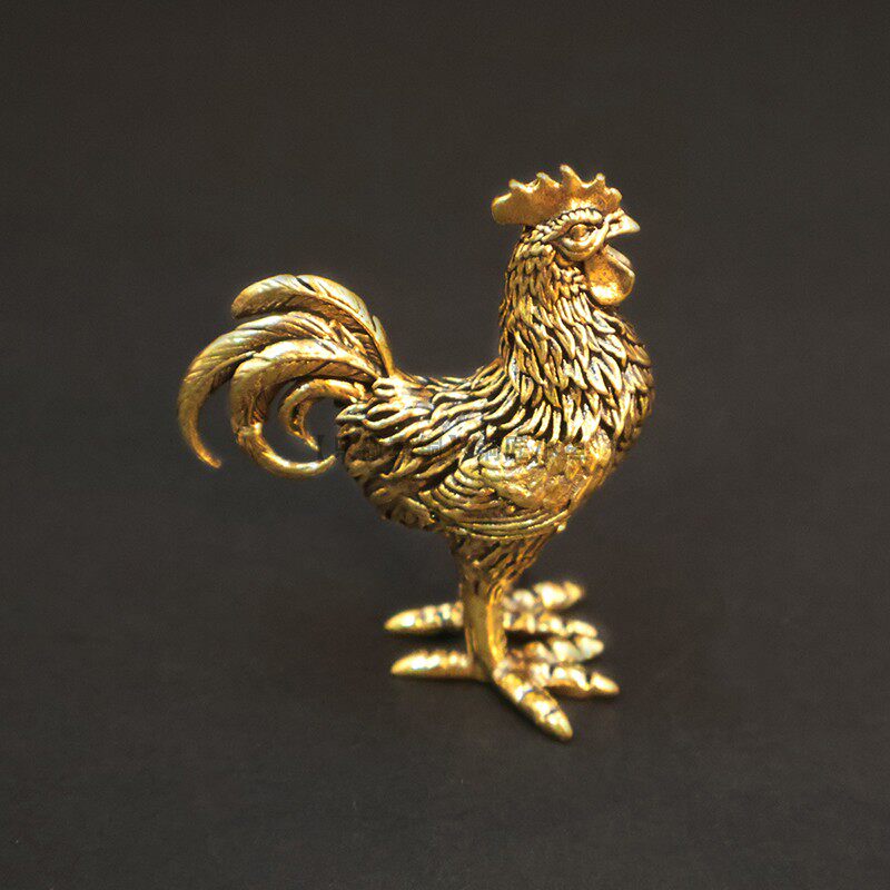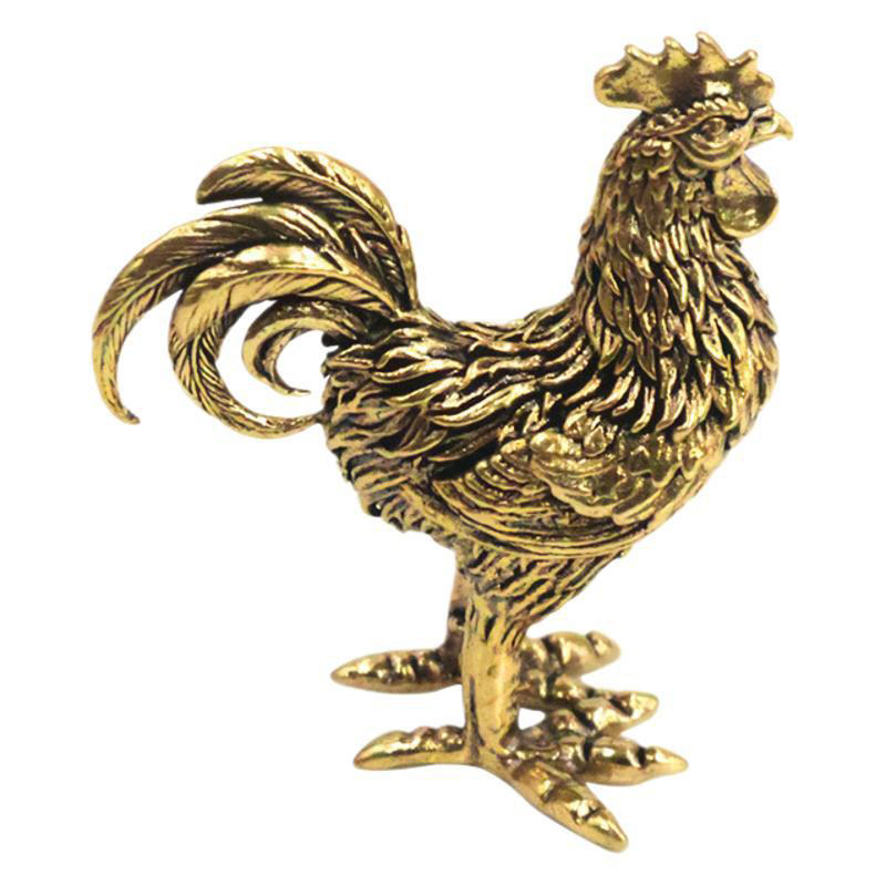纯黄铜大公鸡小摆件实心铜母鸡装饰品鸡生肖工艺品古玩文玩小铜器