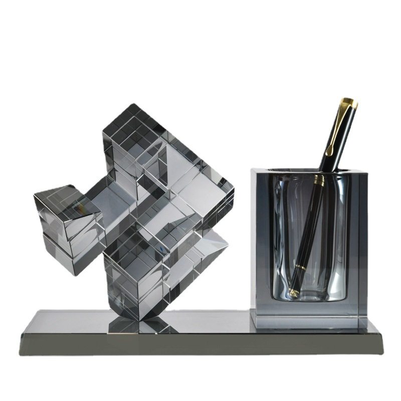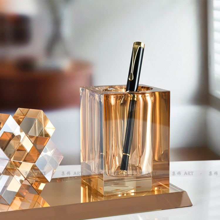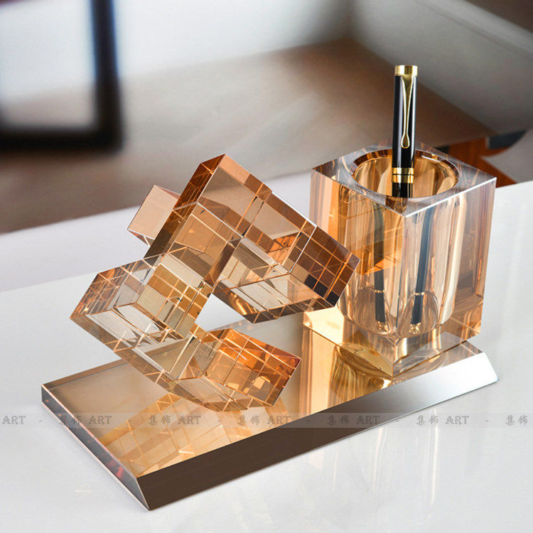 现代创意时尚轻奢几何形状商务办公室书房水晶酒店书桌笔筒组合摆