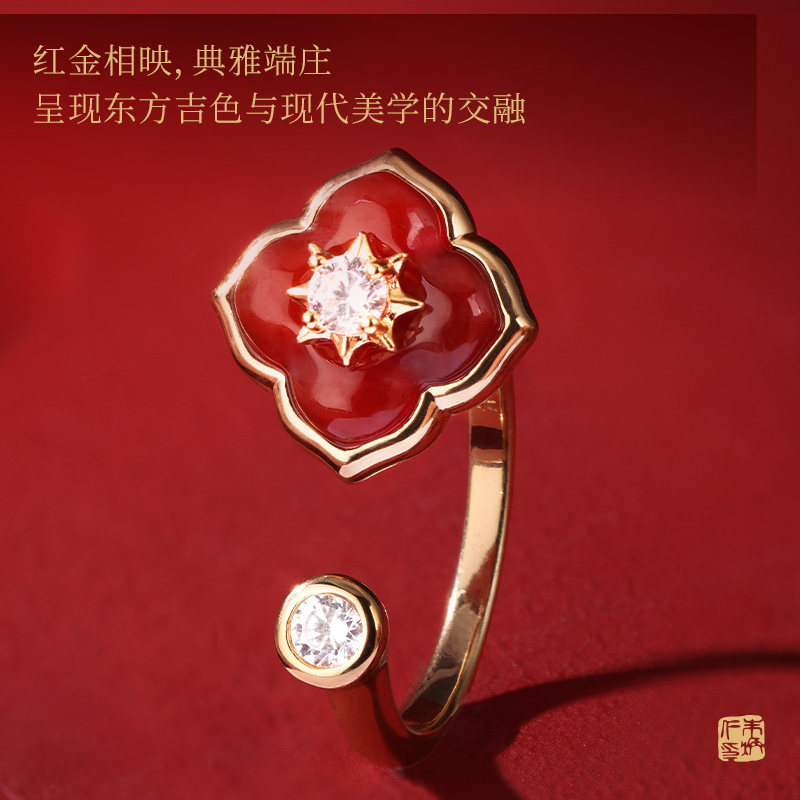 朱炳仁铜喜柿发生系列首饰耳饰项链手链戒指精致典雅红色新年礼物