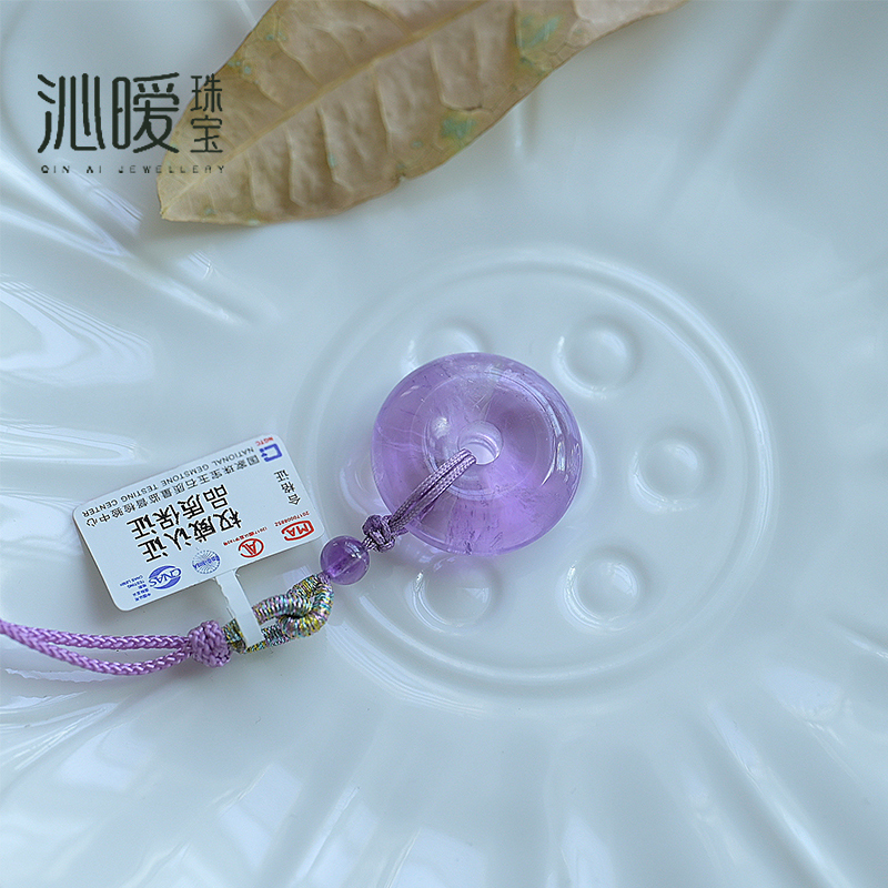 天然紫水晶平安扣吊坠原创设计冰种薰衣草紫晶小胖扣锁骨项链女饰