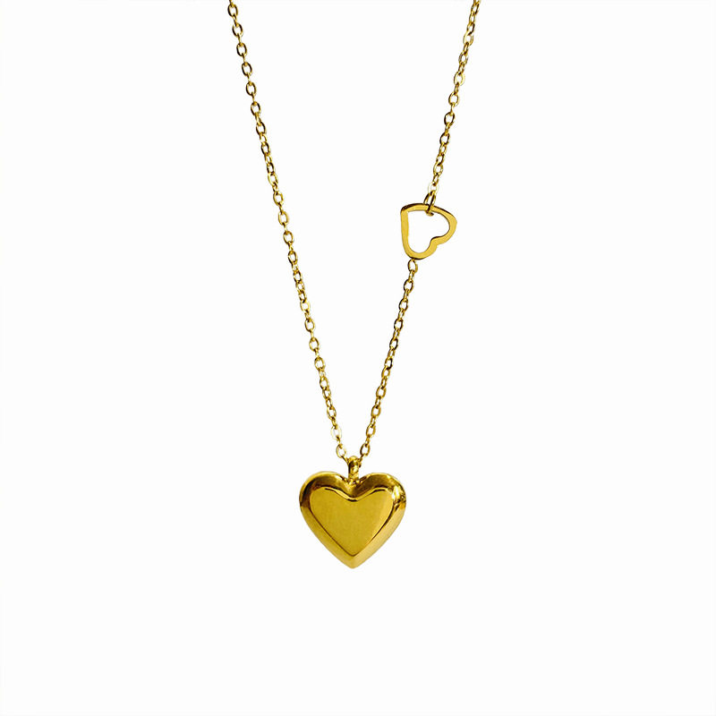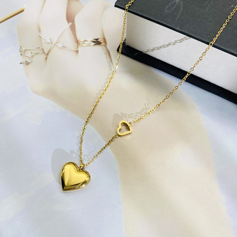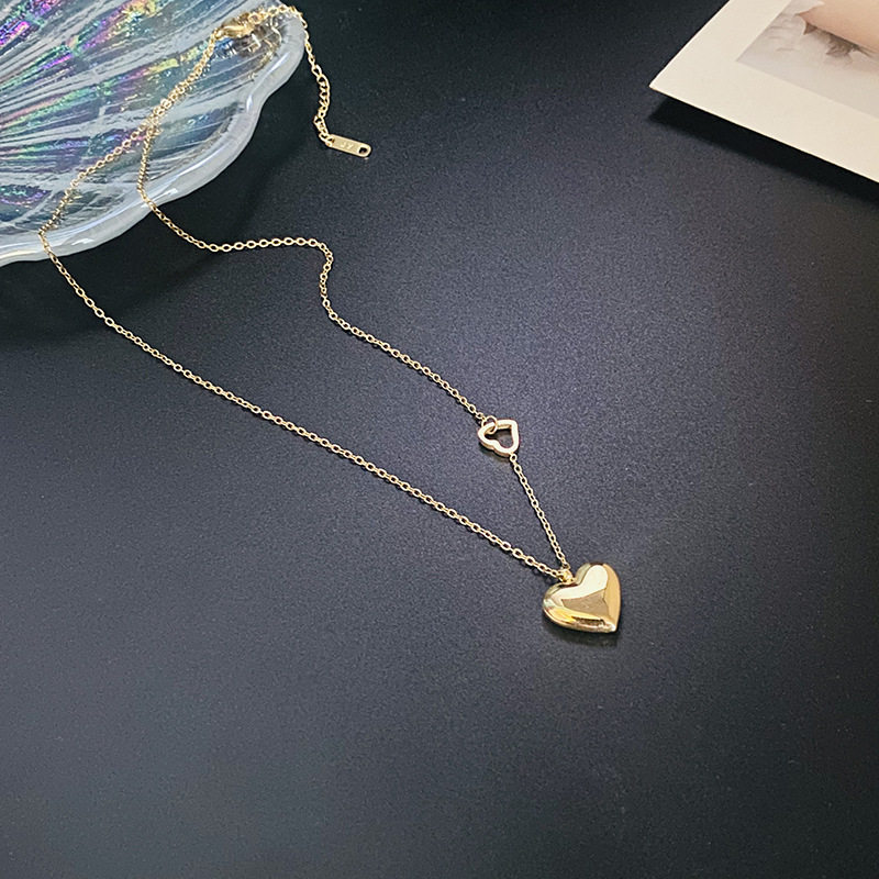 韩版钛钢k金光面立体心形项链女 冷淡风精致不掉色爱心锁骨链新款