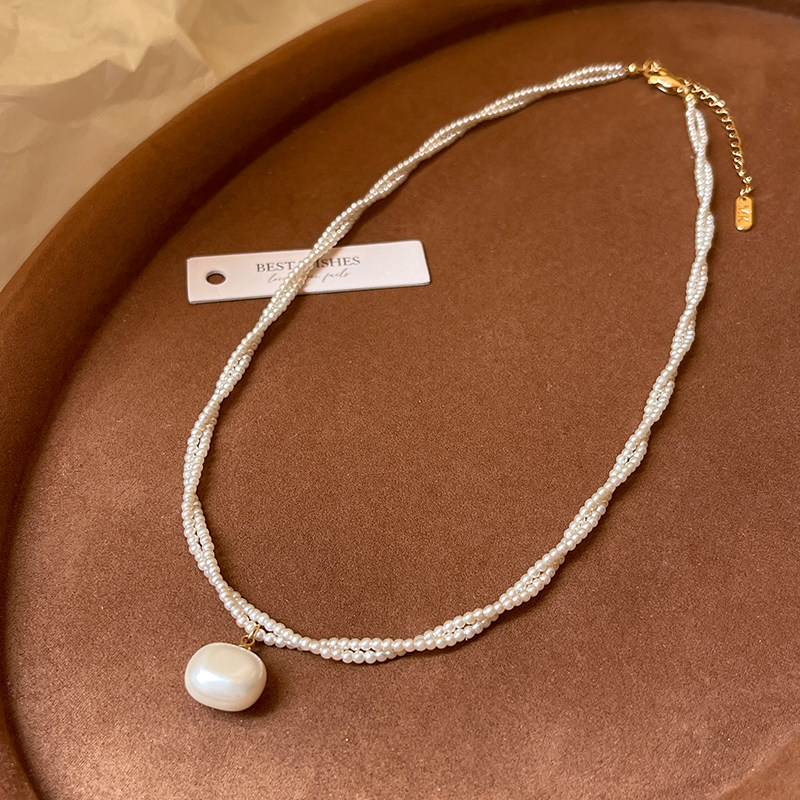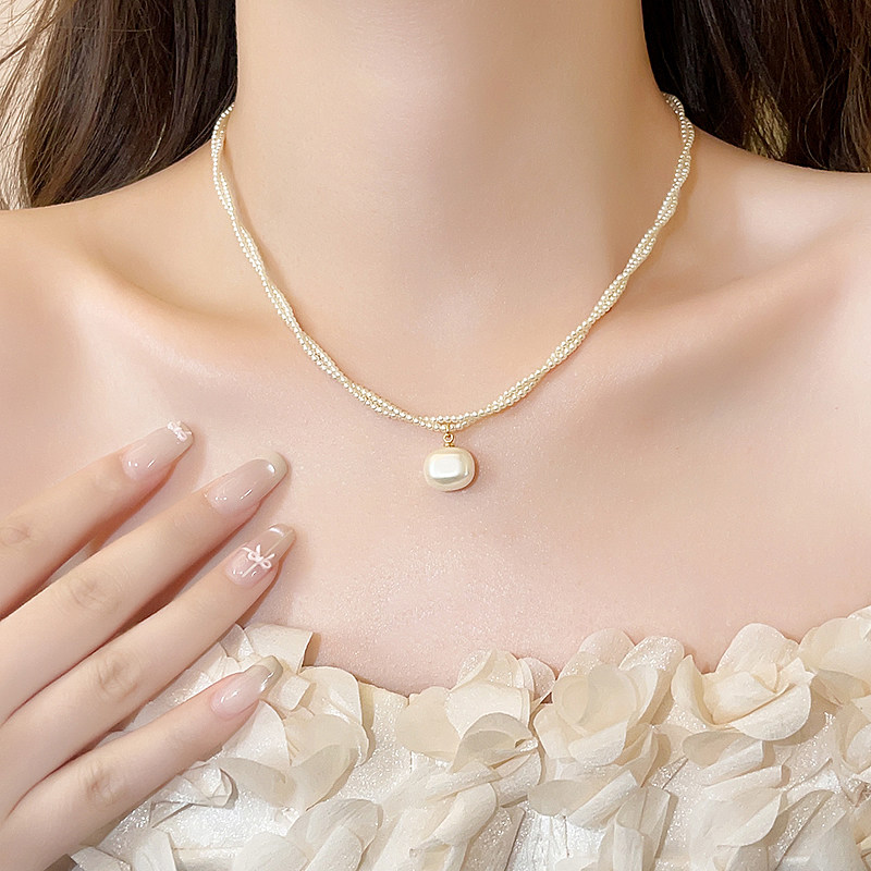双层缠绕方糖珍珠吊坠项链女2026新款轻奢小众适合夏天戴的锁骨链
