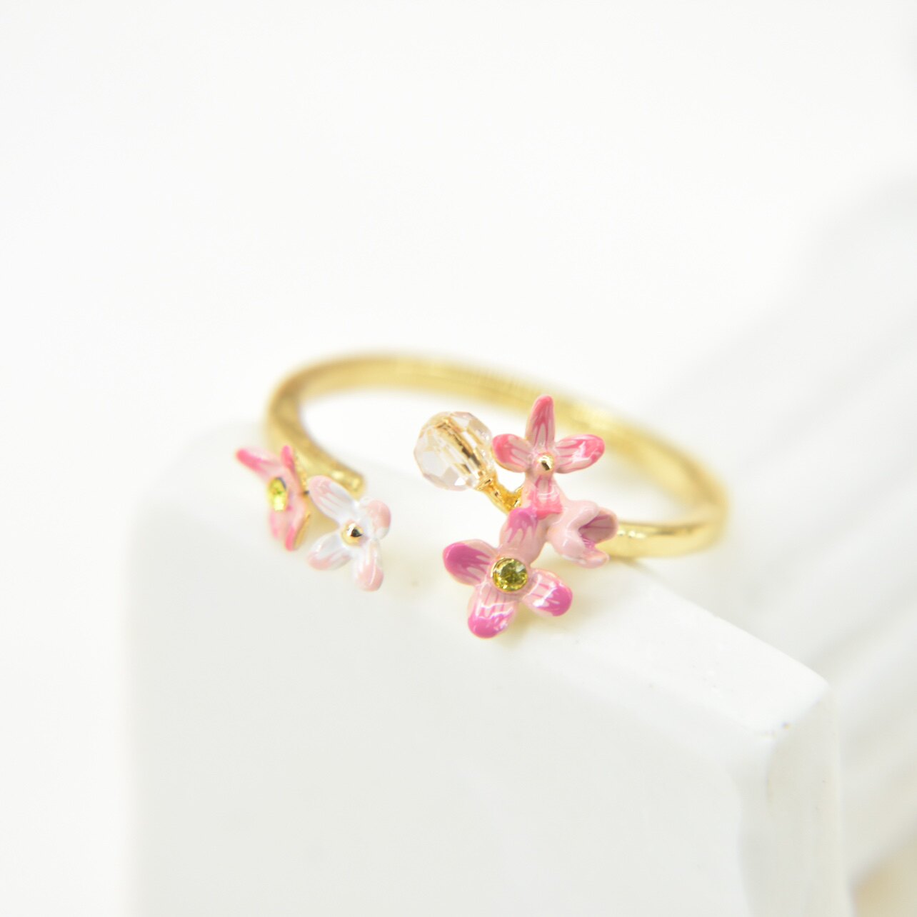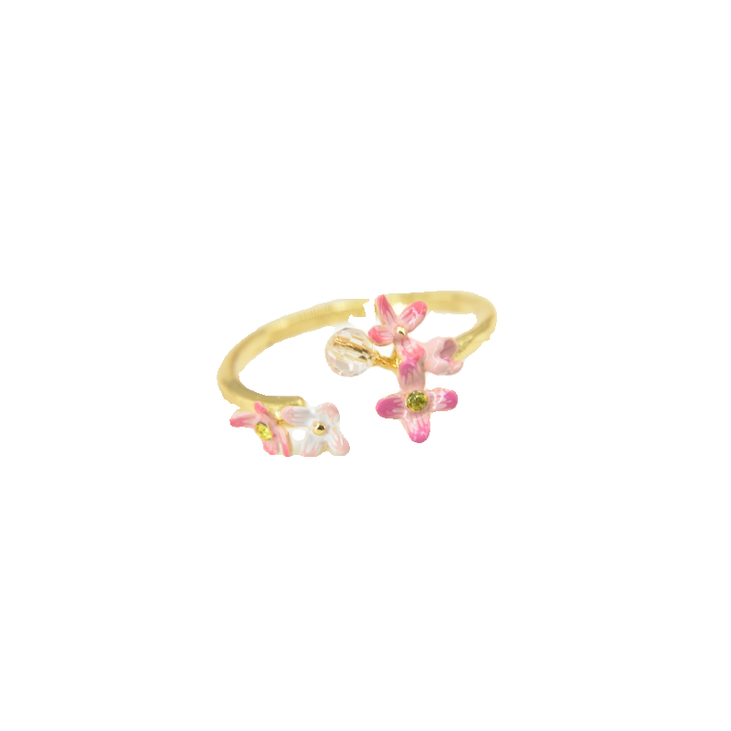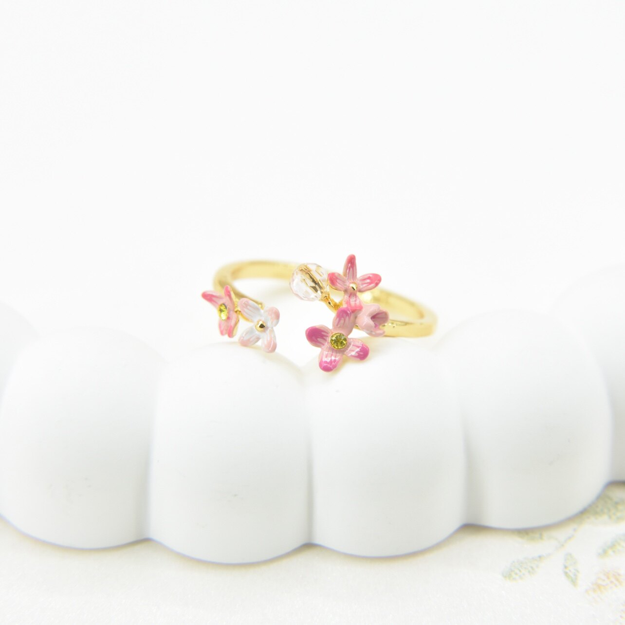 法国手工珐琅 繁花系列 优雅粉色紫色丁香花戒指 开口可调节