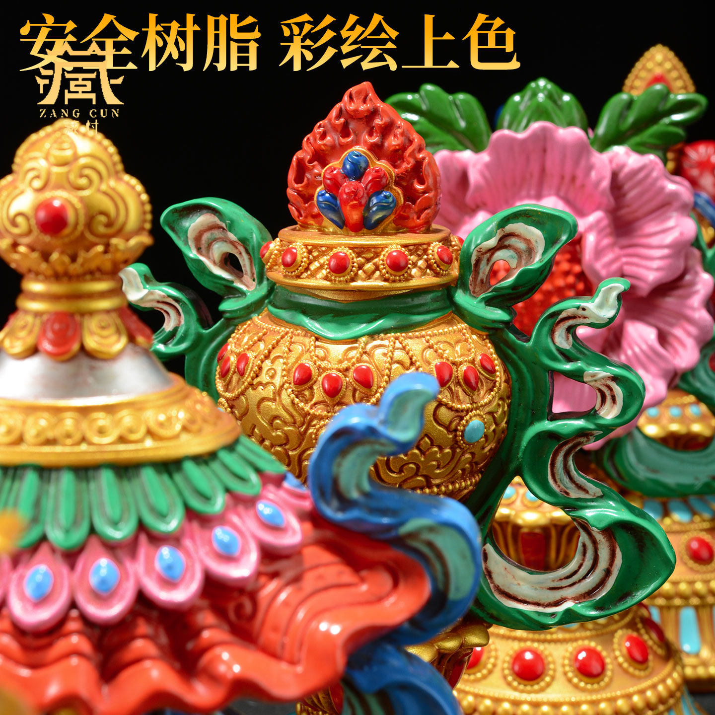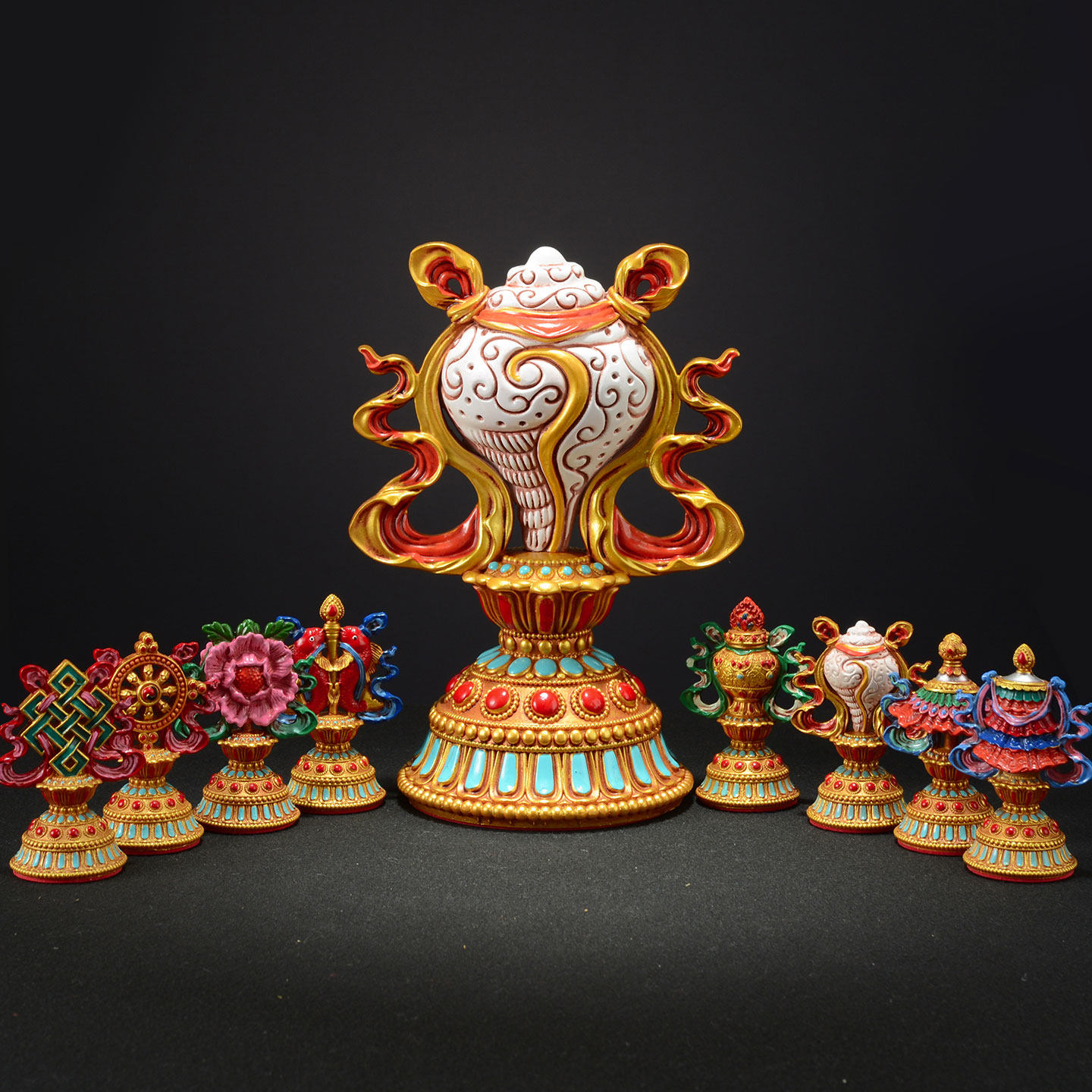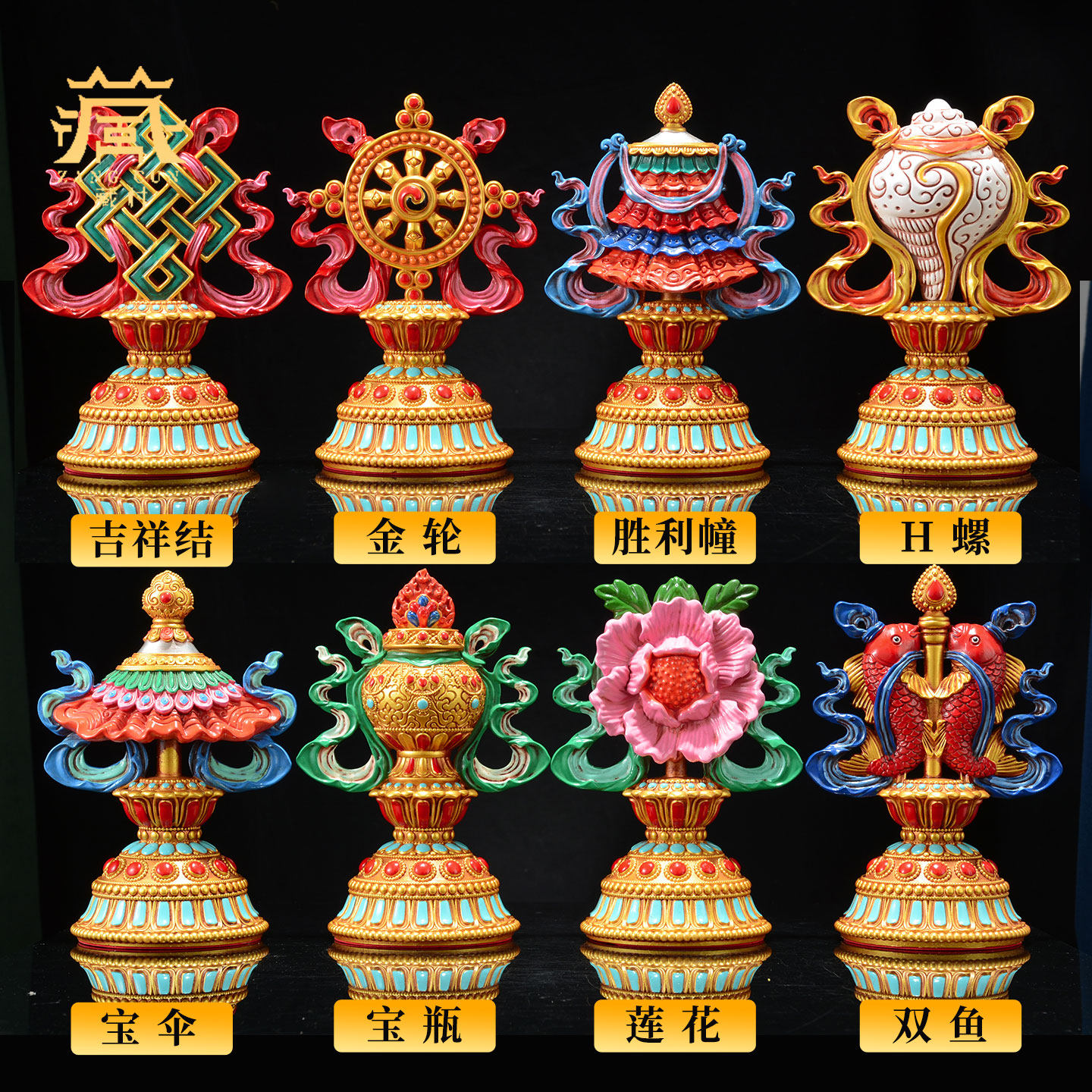 藏村彩绘八吉祥摆件合集 藏式客厅八供全套 家用吉祥八宝组合摆件