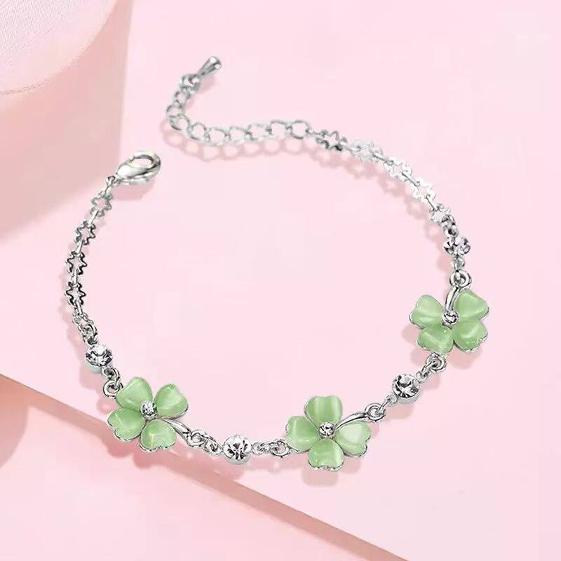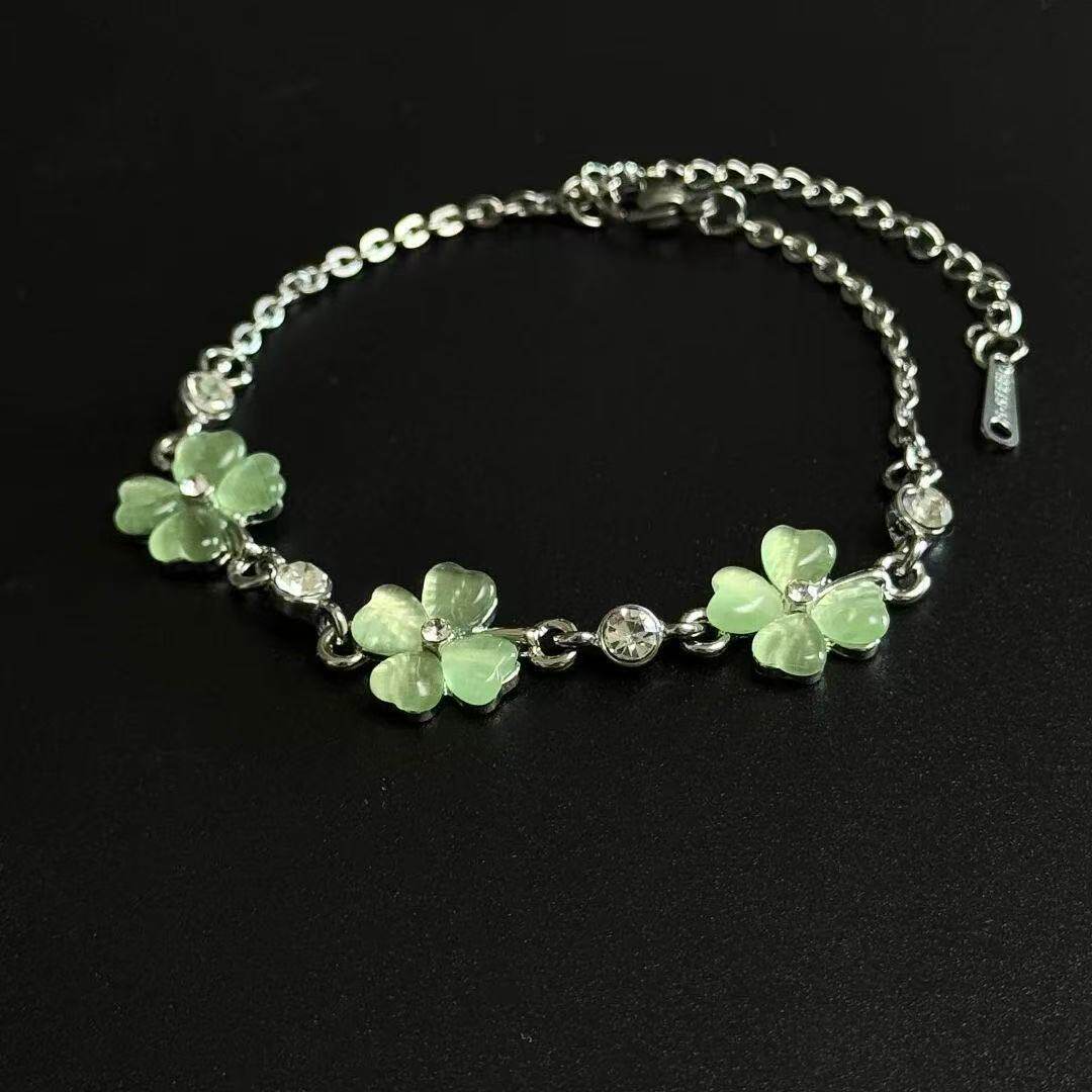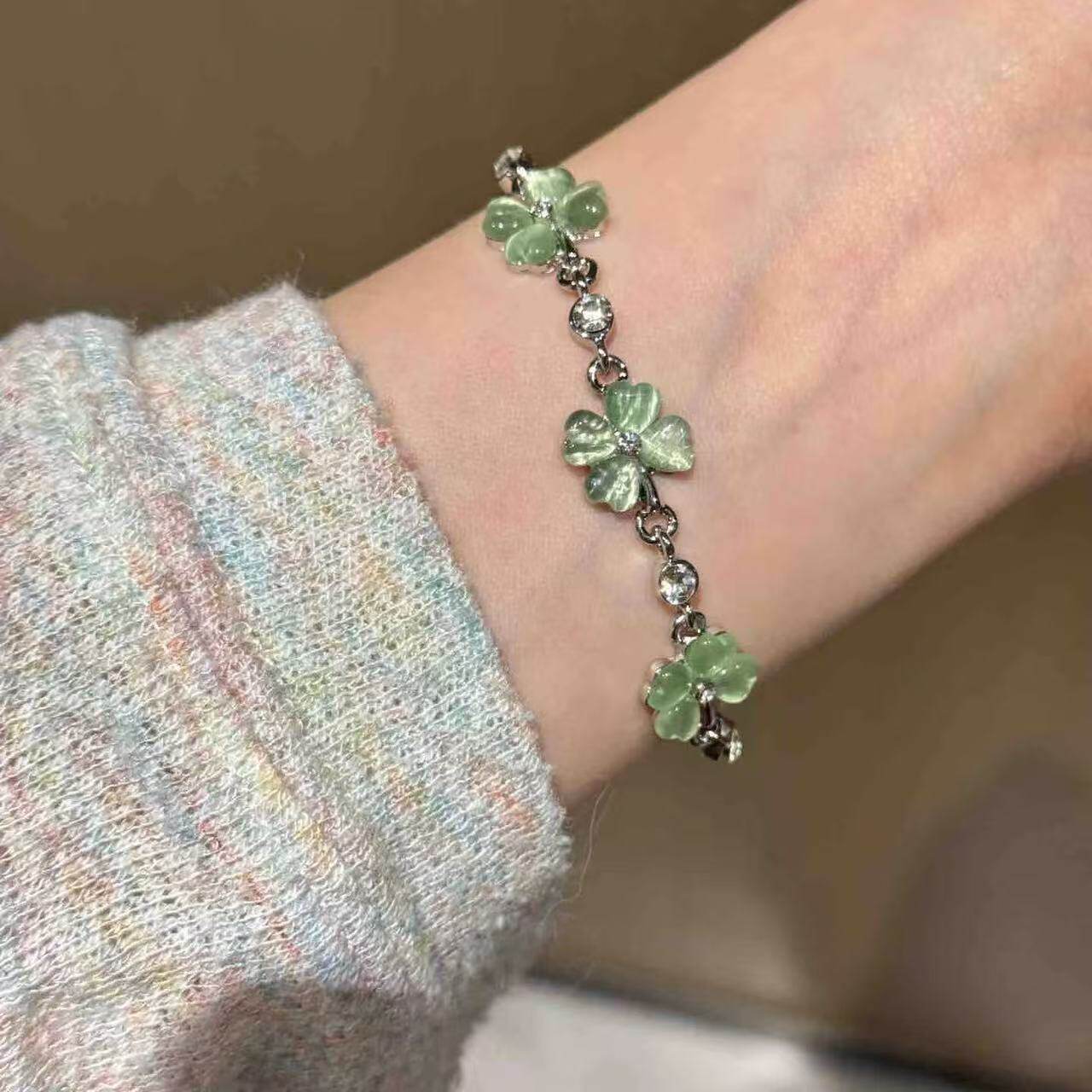 幸运四叶草手链女生小清新风闺蜜猫眼石学生党百搭小众轻奢感首饰