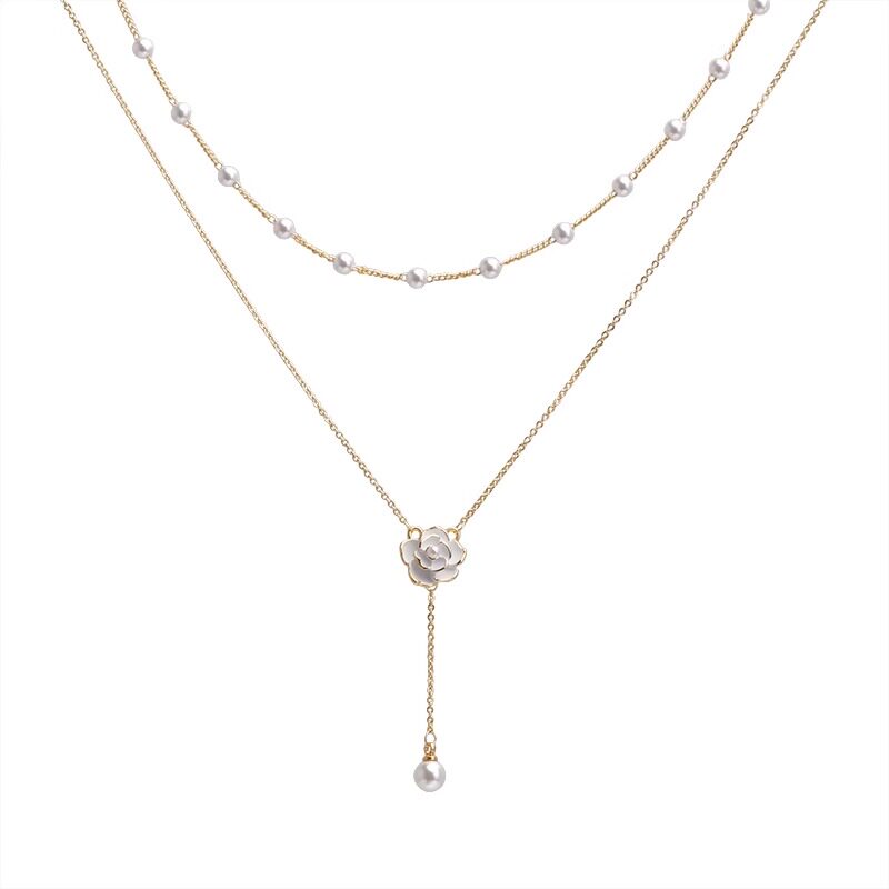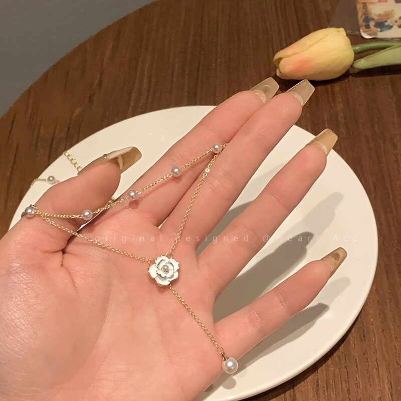 MEILAIFUREN高端定制双层山茶花流苏珍珠项链女款锁骨链轻奢配饰