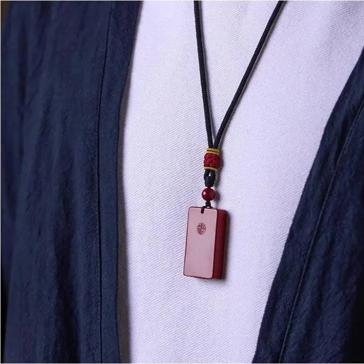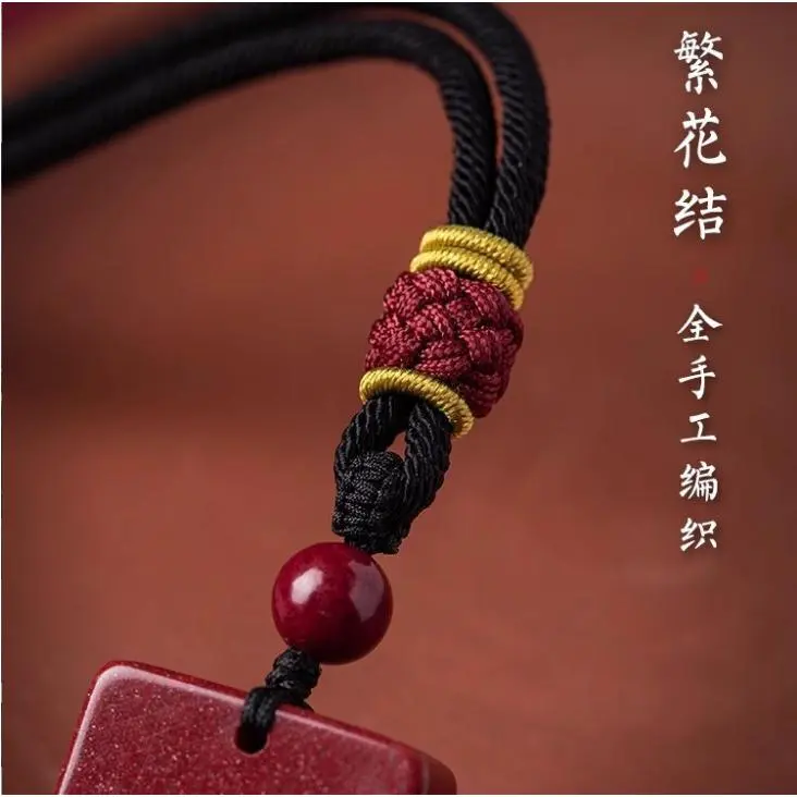 朱砂平安是福无事牌吊坠男项链挂件女原石款饰品平安是福吉祥如意
