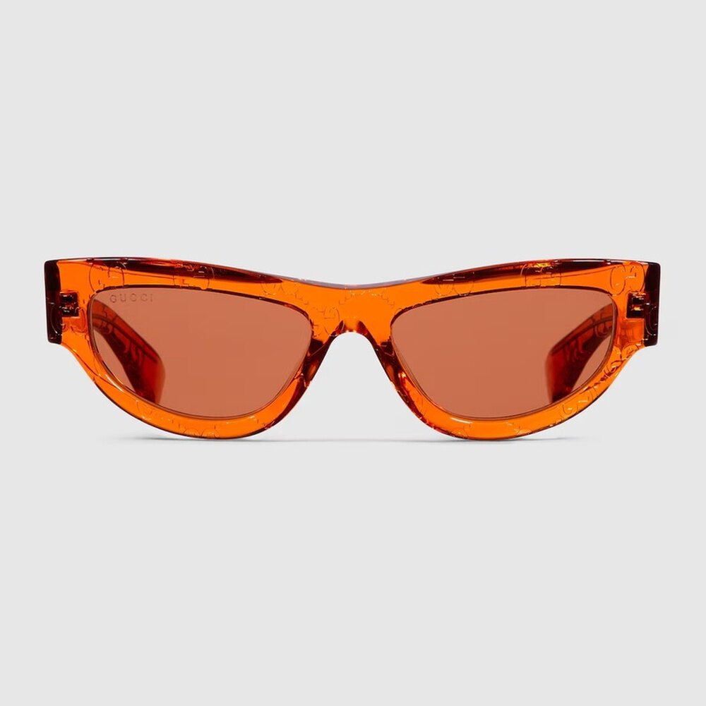 自营欧洲直邮Gucci/古驰 女士橙色醋酸纤维双G猫眼框太阳眼镜
