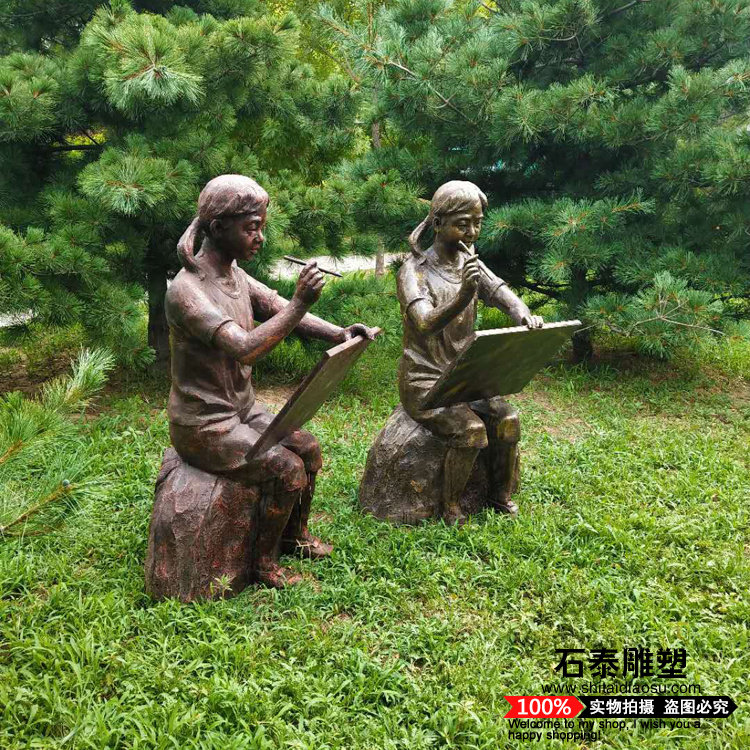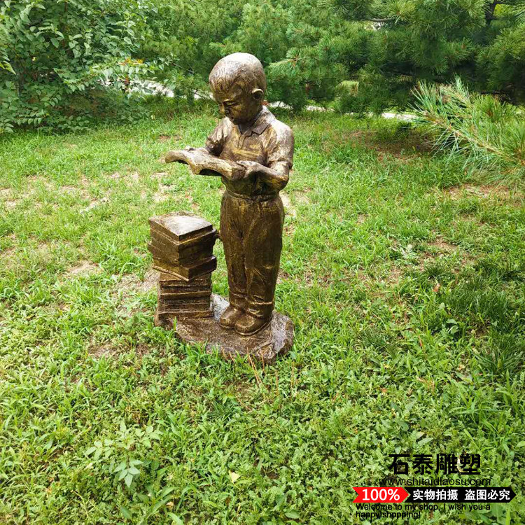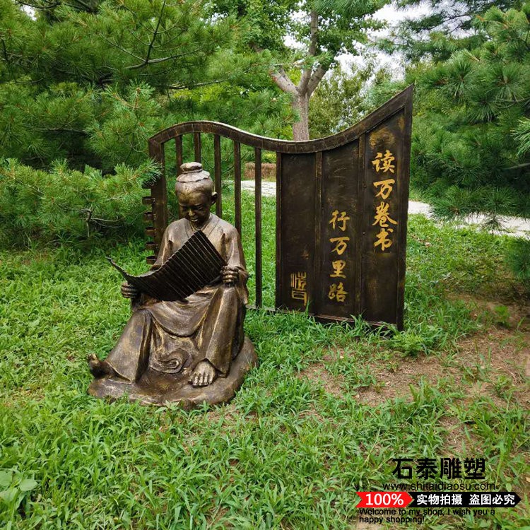 玻璃钢古代小孩读书仿铜人物读万卷书行万里路雕塑户外校园摆件