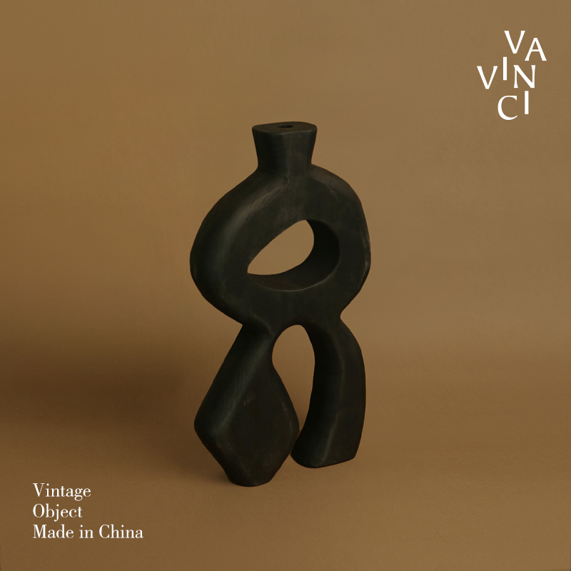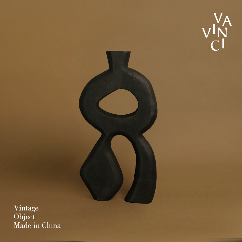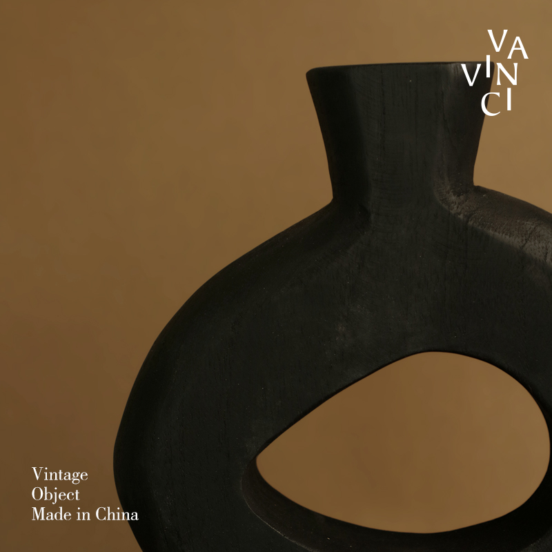 梵其侘寂风黑色碳化木几何艺术摆件中古风样板间民宿电视柜装饰品