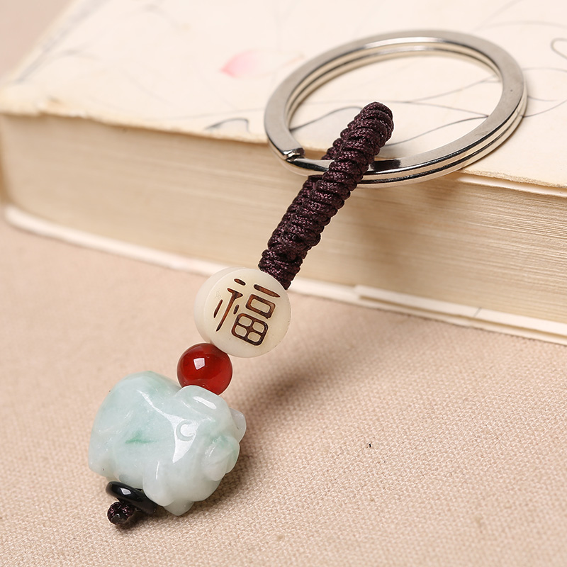 2024龙年生肖属相鸡天然翡翠玉猪吊坠羊兔拱福三合配钥匙挂件饰品