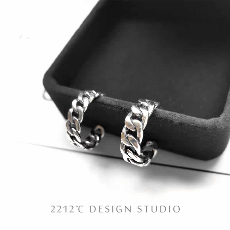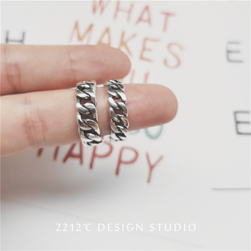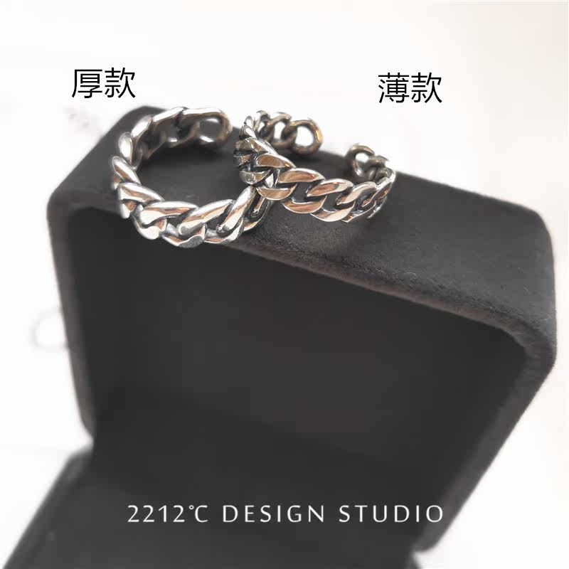 2212银饰 冷淡风开口戒指 s925纯银戒指环 链条做旧百搭戒指