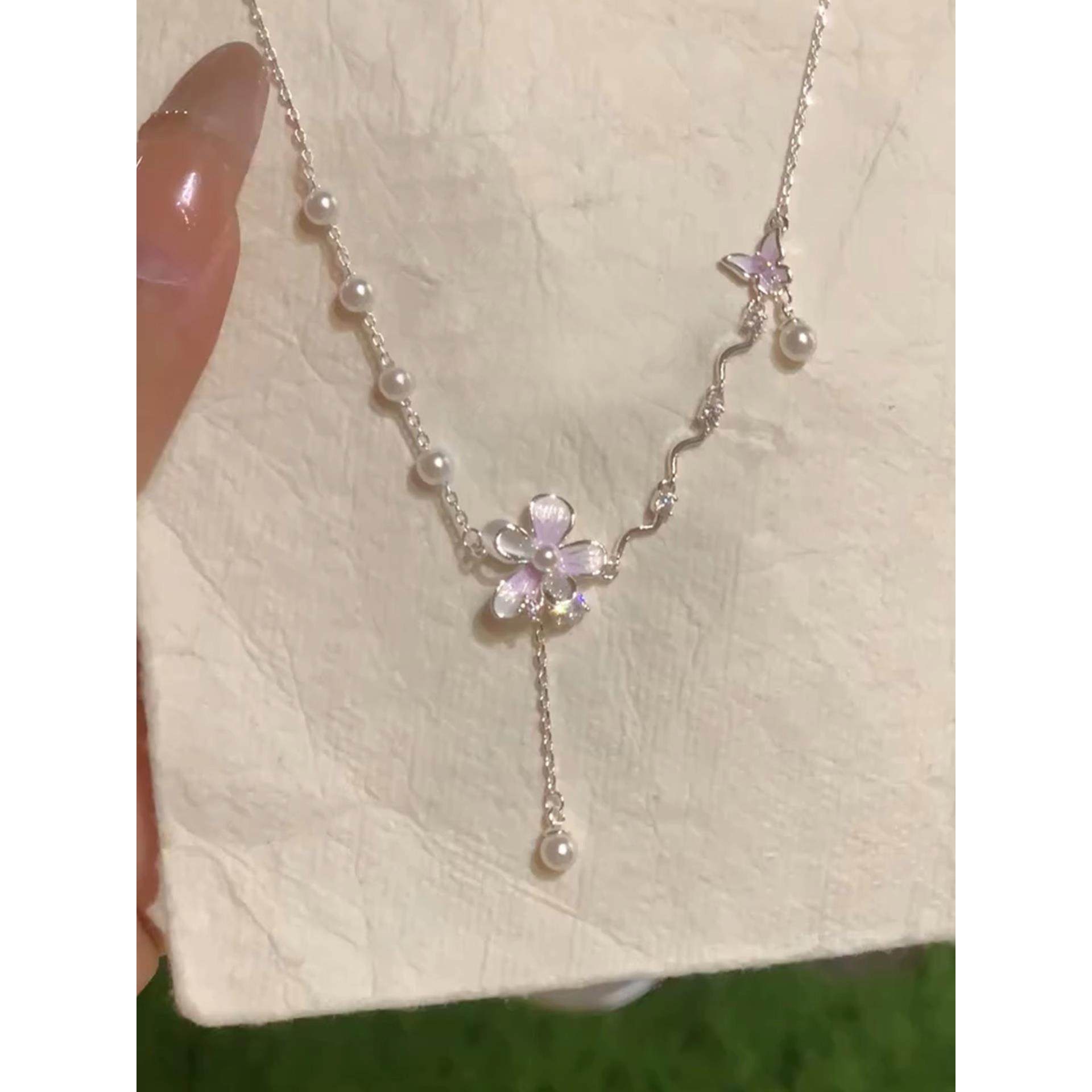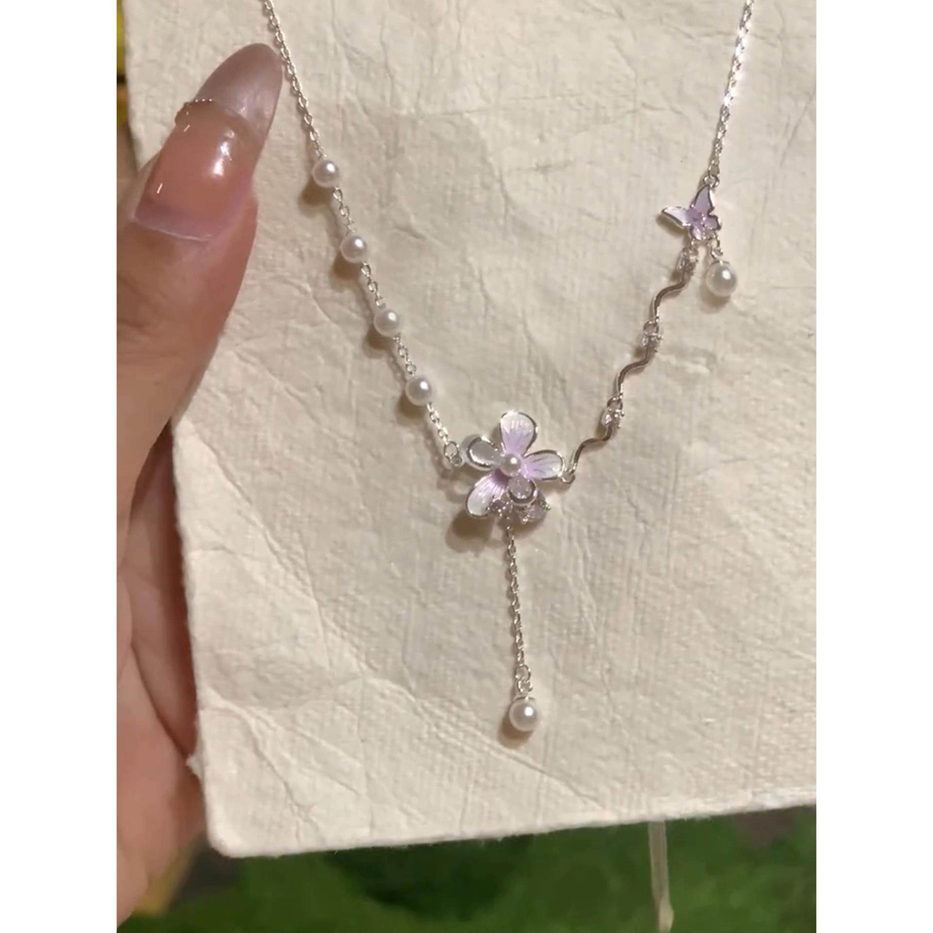 紫色花朵仿珍珠项链宫廷风轻奢复古高级感大气精致气质巨好看颈链