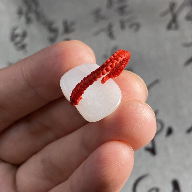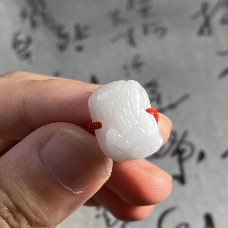 天然玉石缅甸A货翡翠白玉貔貅豆种绳编红绳戒指指环时尚饰品礼物