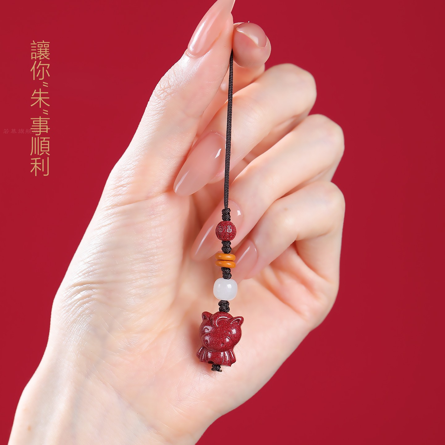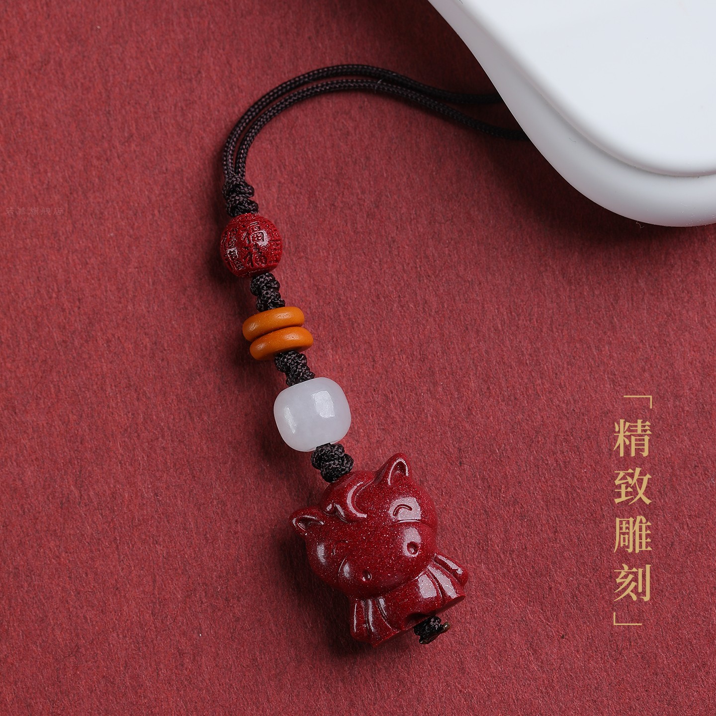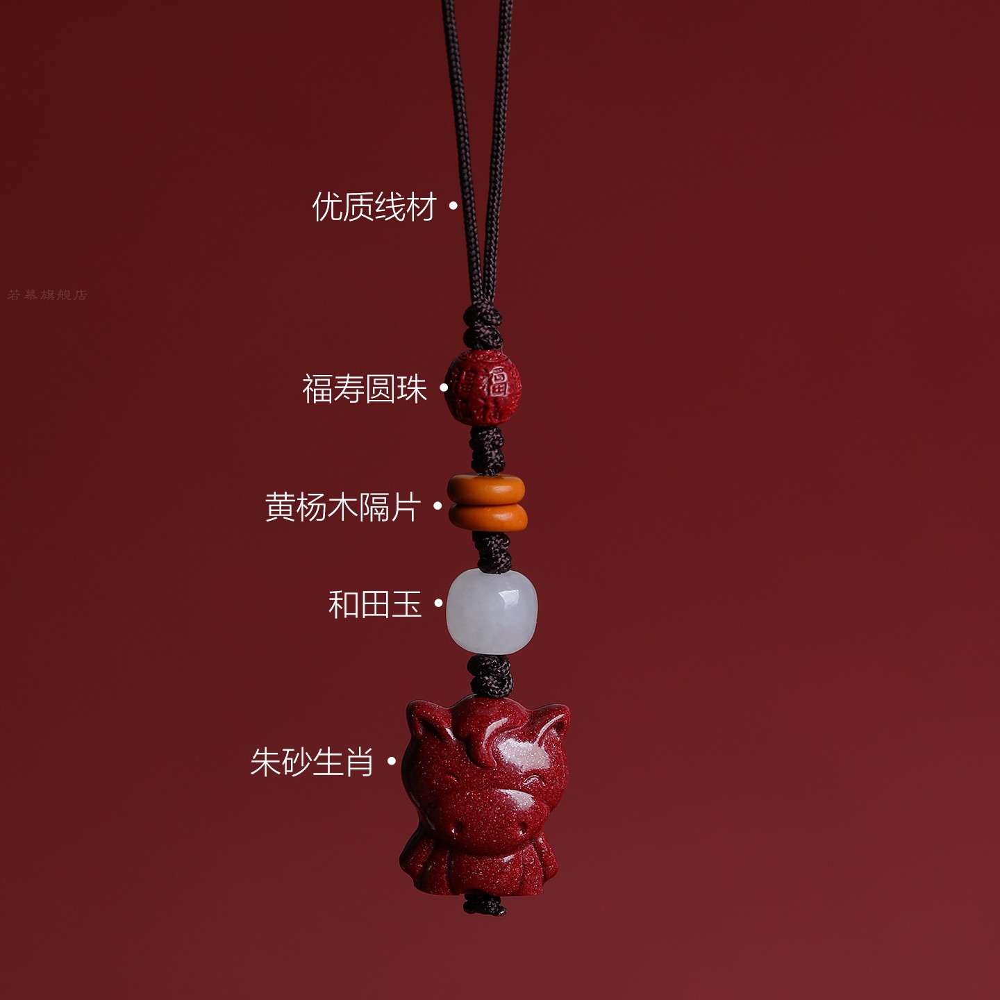 原矿朱砂手机链女新款十二生肖和田玉吊坠马年本命年挂件钥匙扣