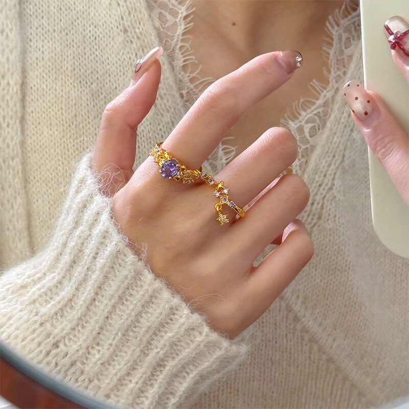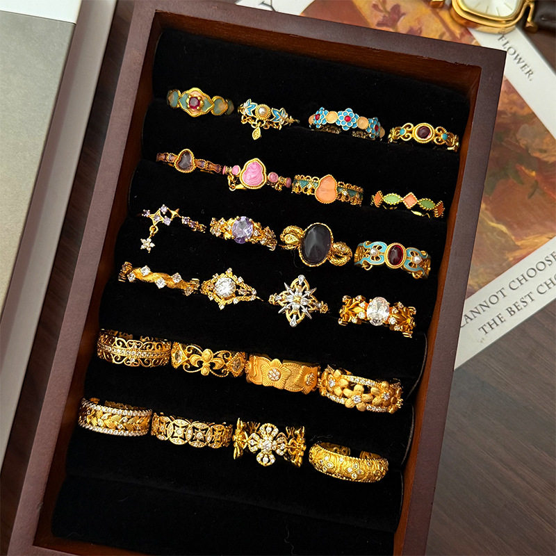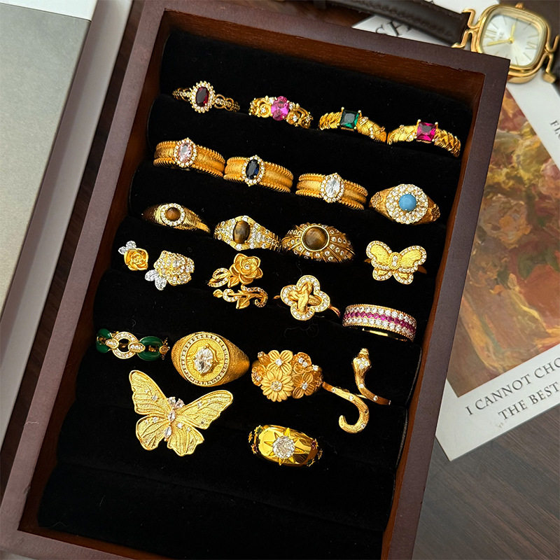 欧美轻奢复古风时尚气质百搭虎眼石戒指女小众设计感戒子指环