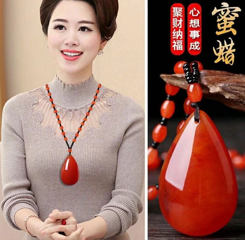 仿蜜蜡秋冬毛衣链项链配饰女衬衣服棉麻装饰品挂坠挂件唐装T恤潮