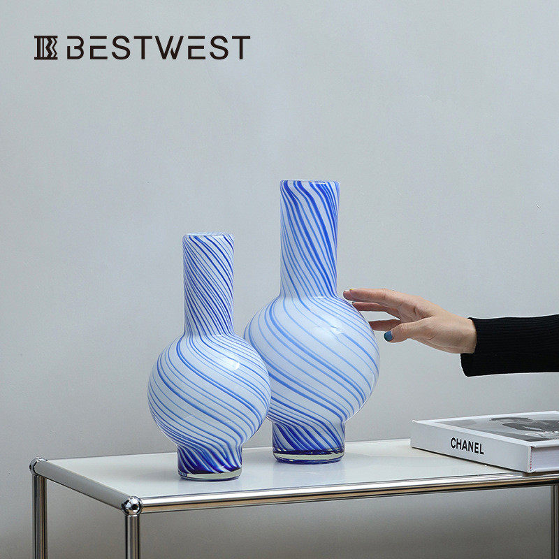热销博西家居蓝色条纹葫芦水培玻璃花瓶摆件家居软装花器装饰样板