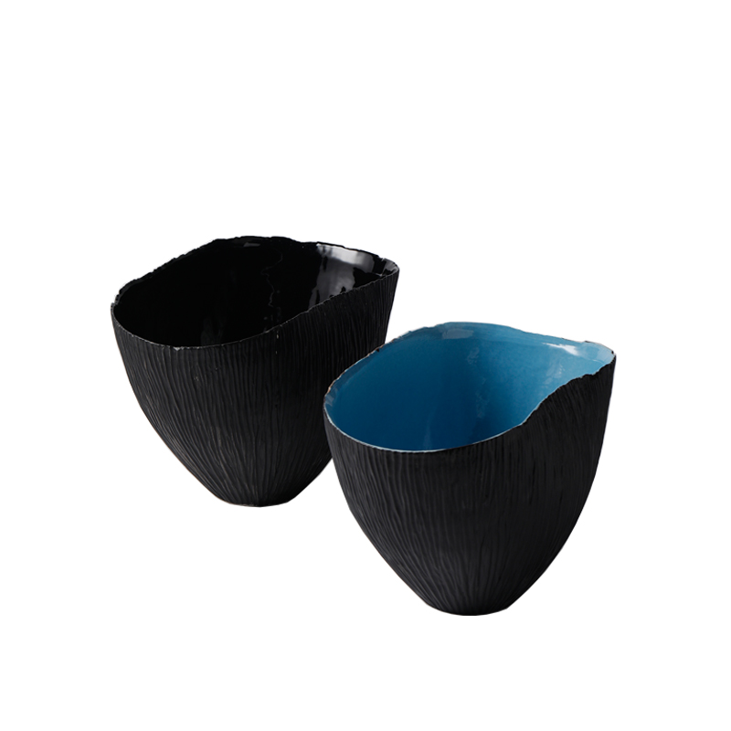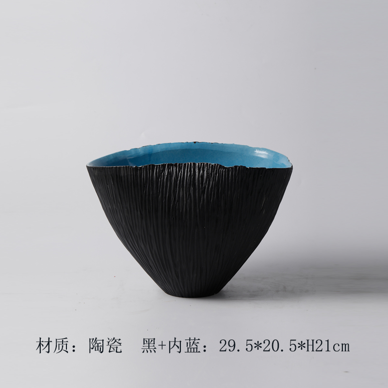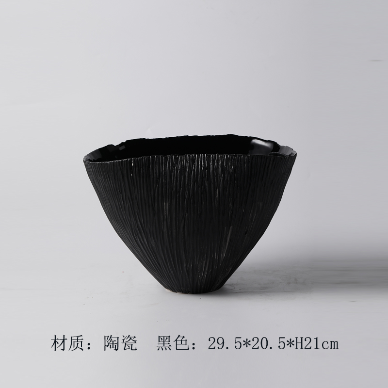 现代简约黑色陶瓷大口花盆花器摆件样板间售楼部酒店客厅花瓶装饰