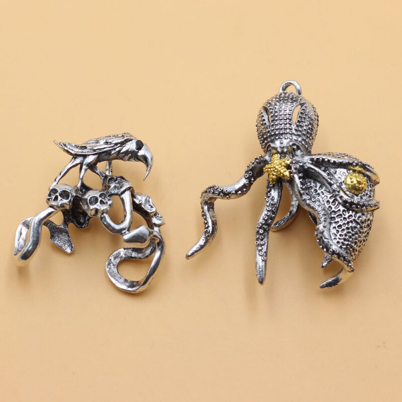 新款熊勾爪牙套 章鱼乌鸦熊勾子吊坠 合金藏银神兽霸气牙套挂件