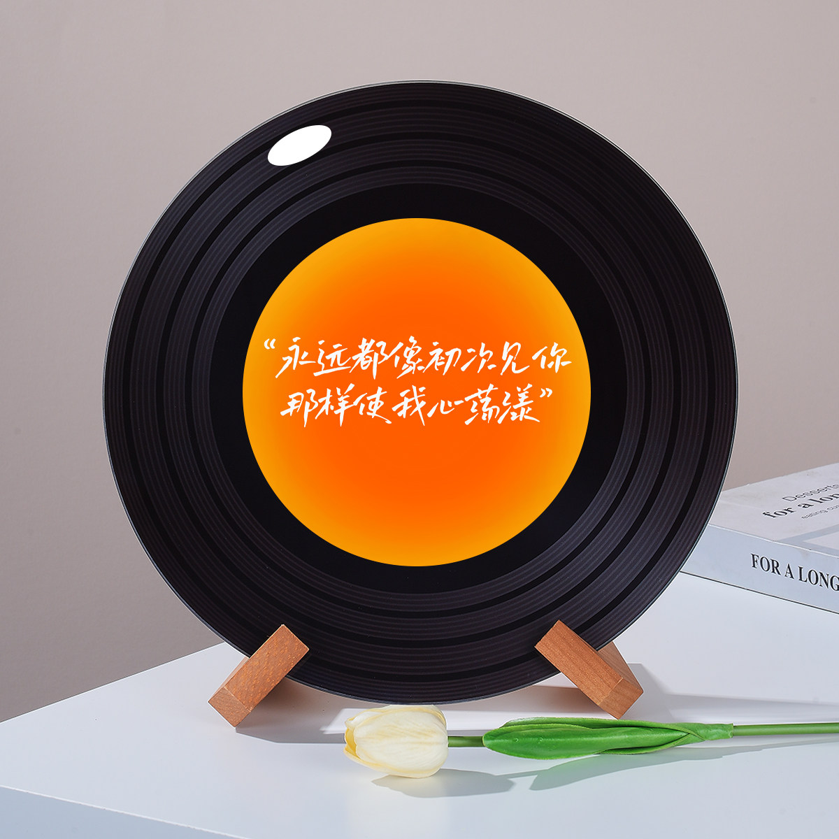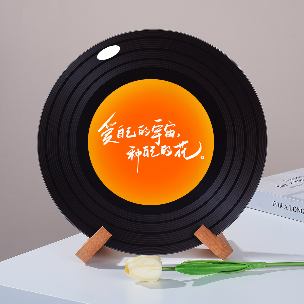 橙色绝美落日氛围感ins黑胶唱片摆件杂志架电视格子摆件创日礼物