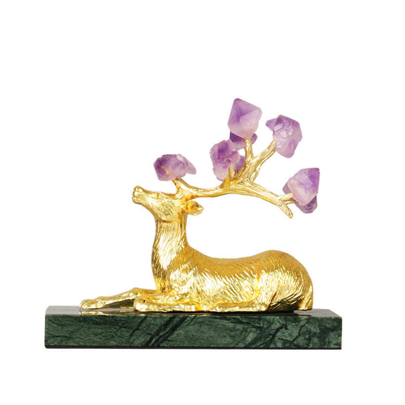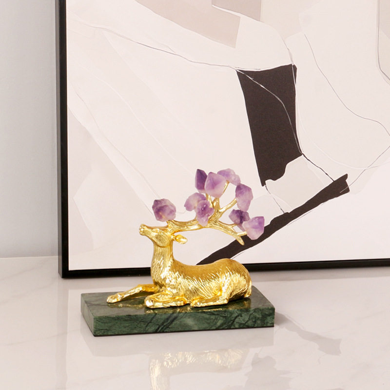 现代轻奢绿大g理石紫晶鹿印度摆件样客厅玄关电视柜酒柜家居装饰