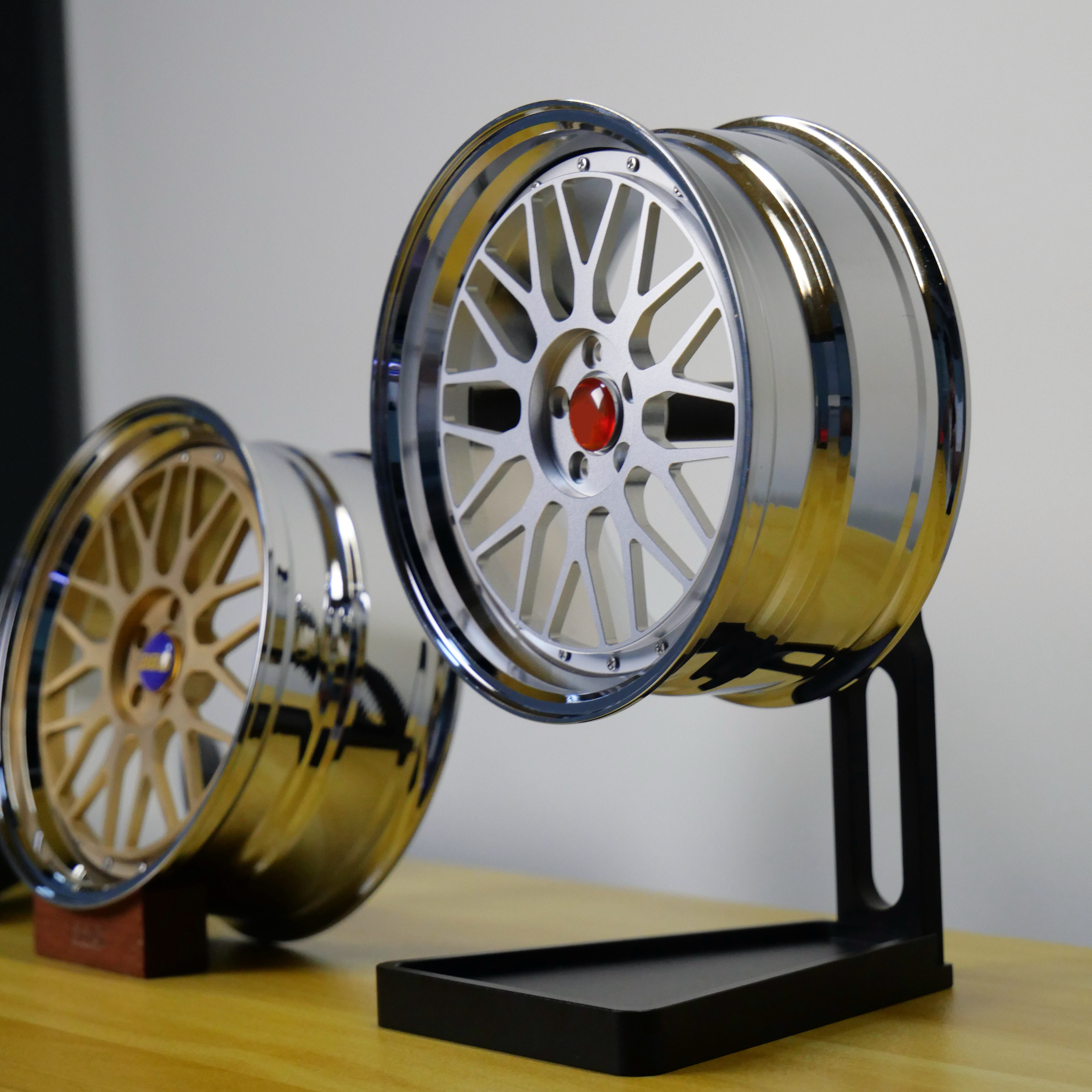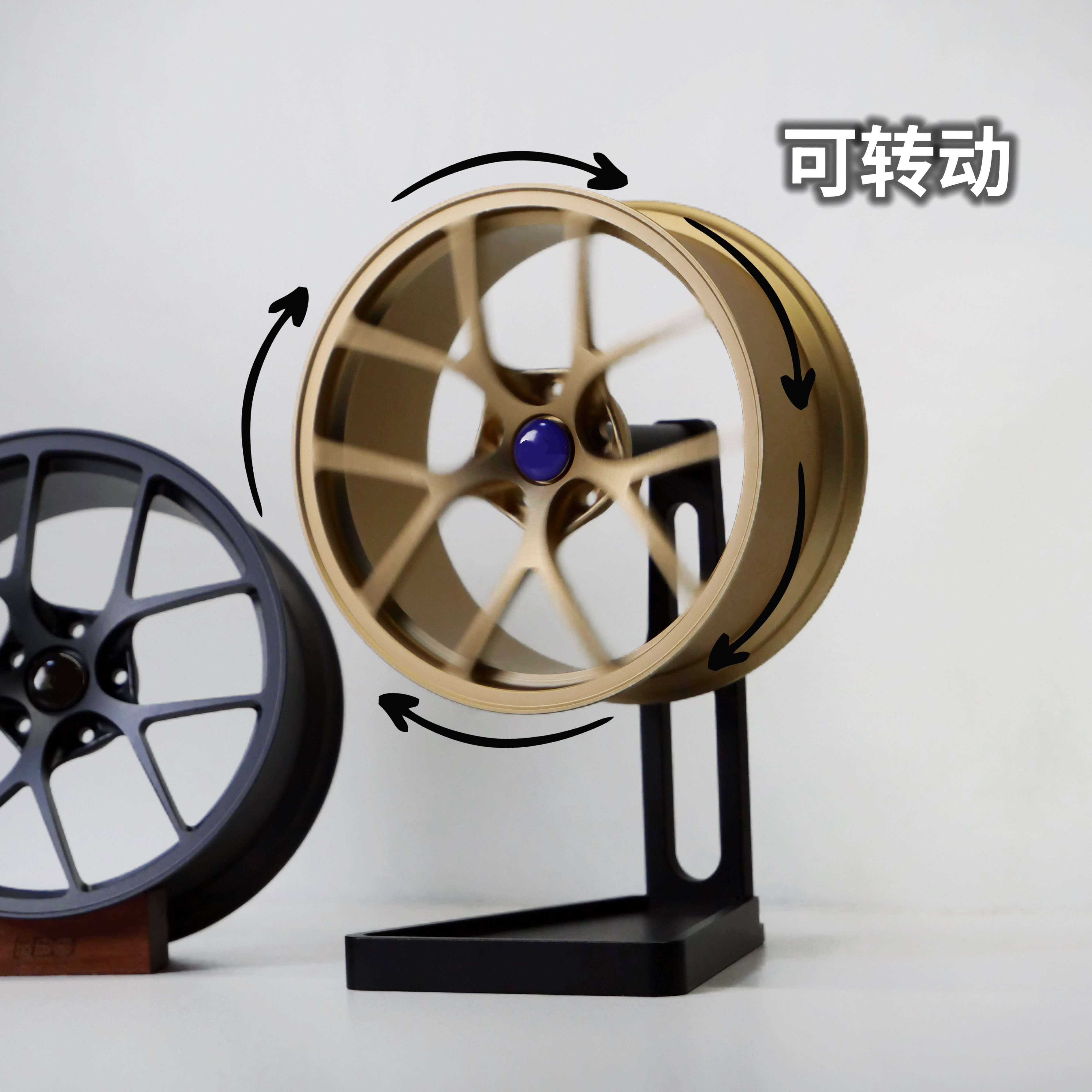 创意汽车轮毂桌面摆件可转动铝合金改装车轮装饰解压模型