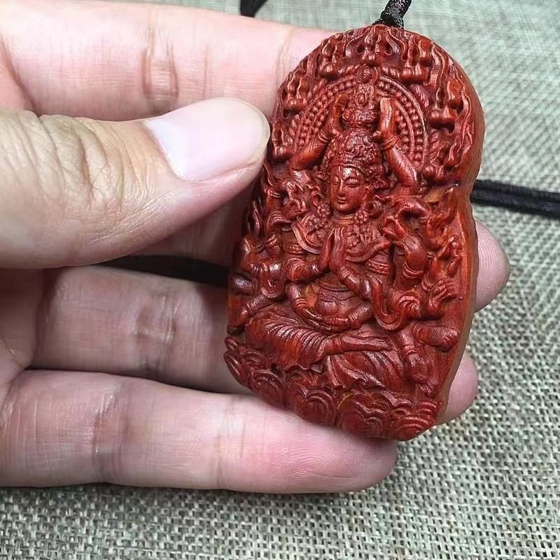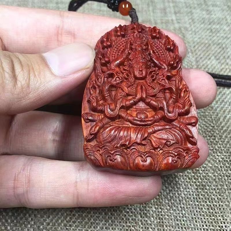 小叶紫檀千手观音本命佛吊坠十二生肖属相护身佛符男女属鼠木挂件