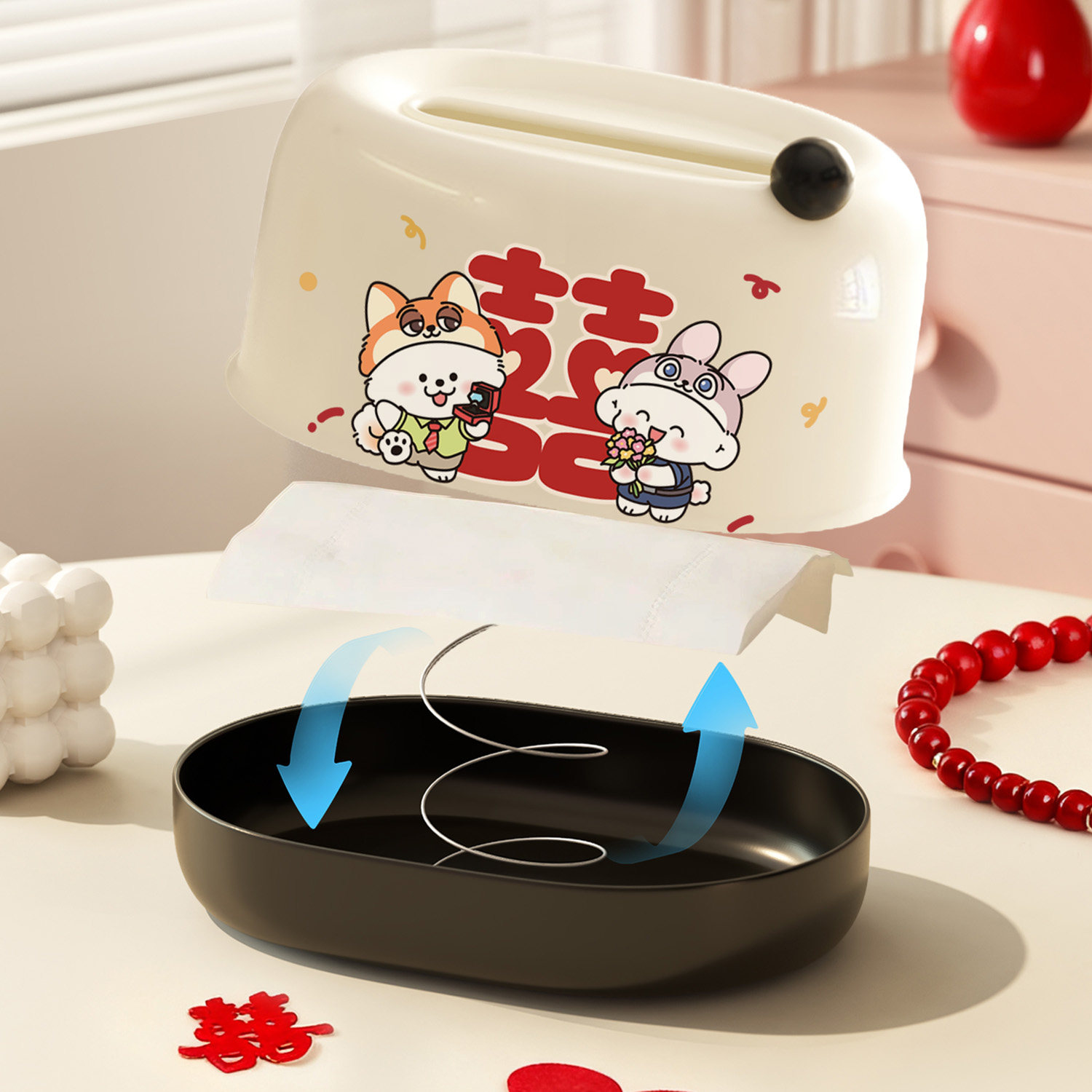 朱迪尼克卡通纸巾盒客厅茶几囍字抽纸收纳盒创意结婚布置婚房摆件