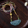 天然翡翠蓝水蝴蝶吊坠镂空碧玺多层珠链冰种新中式挂件玉坠