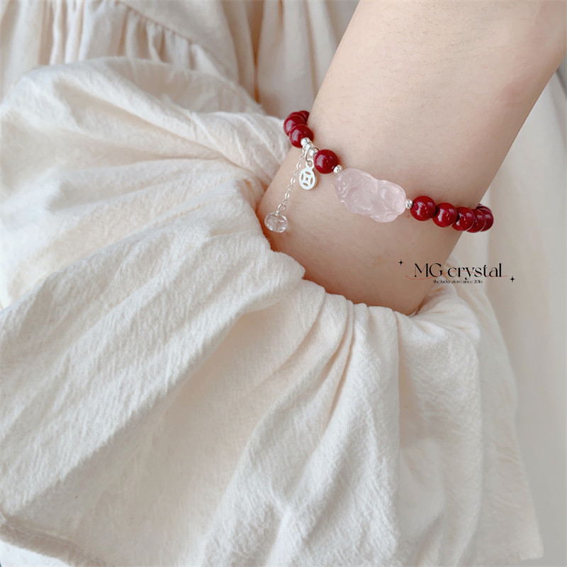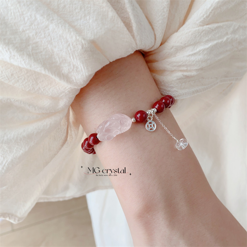 【莳与】原创天然紫金朱砂粉晶貔貅铜钱流苏手链手串 气质 简约