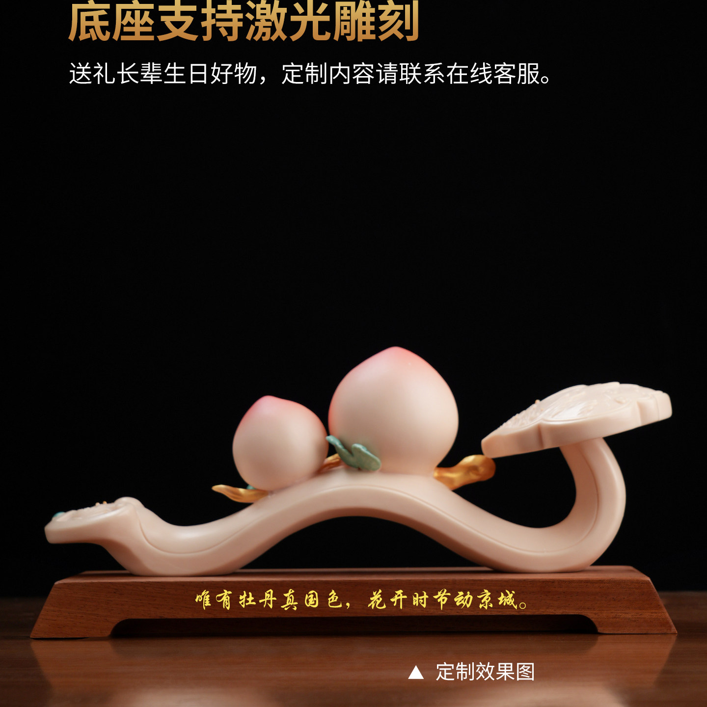 东方泥土《福山寿海》德化白瓷雕塑寿桃摆件长辈生日祝寿礼品锦盒