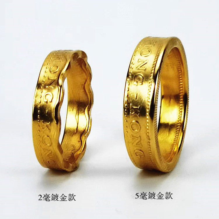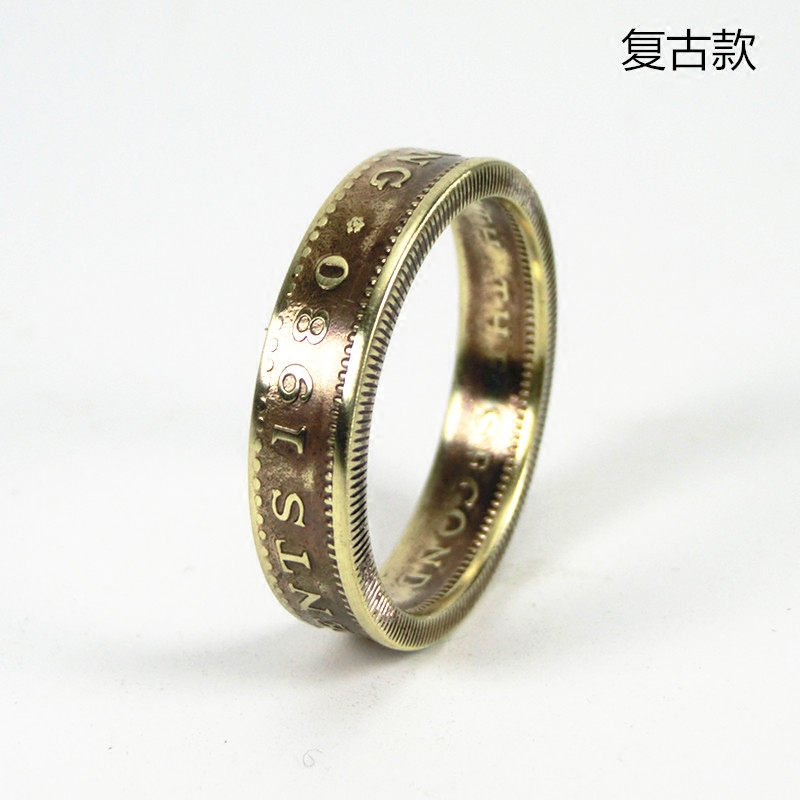镀金复古好成交吧纯手工送个性男女学生情侣香港女王5毫硬币戒指