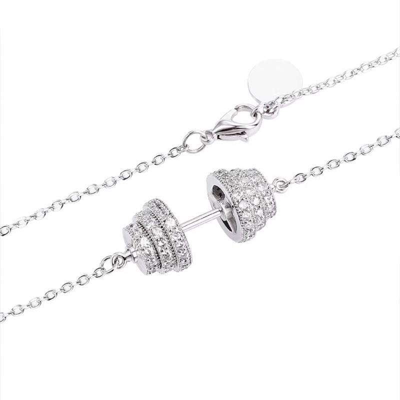 钛钢吊坠晶晶同款满钻健身哑铃项链杠铃锁骨链520送男朋友礼物女
