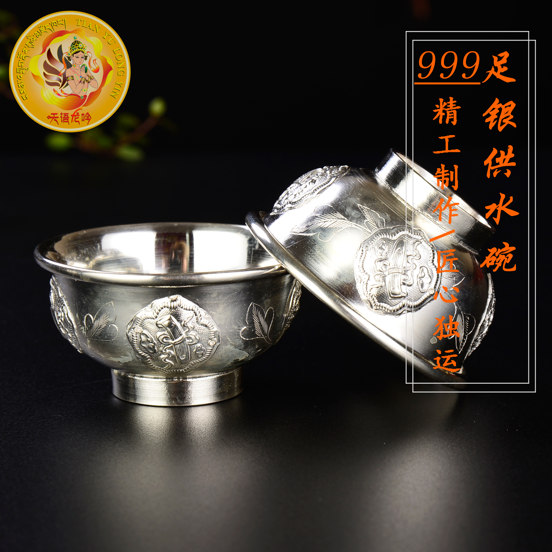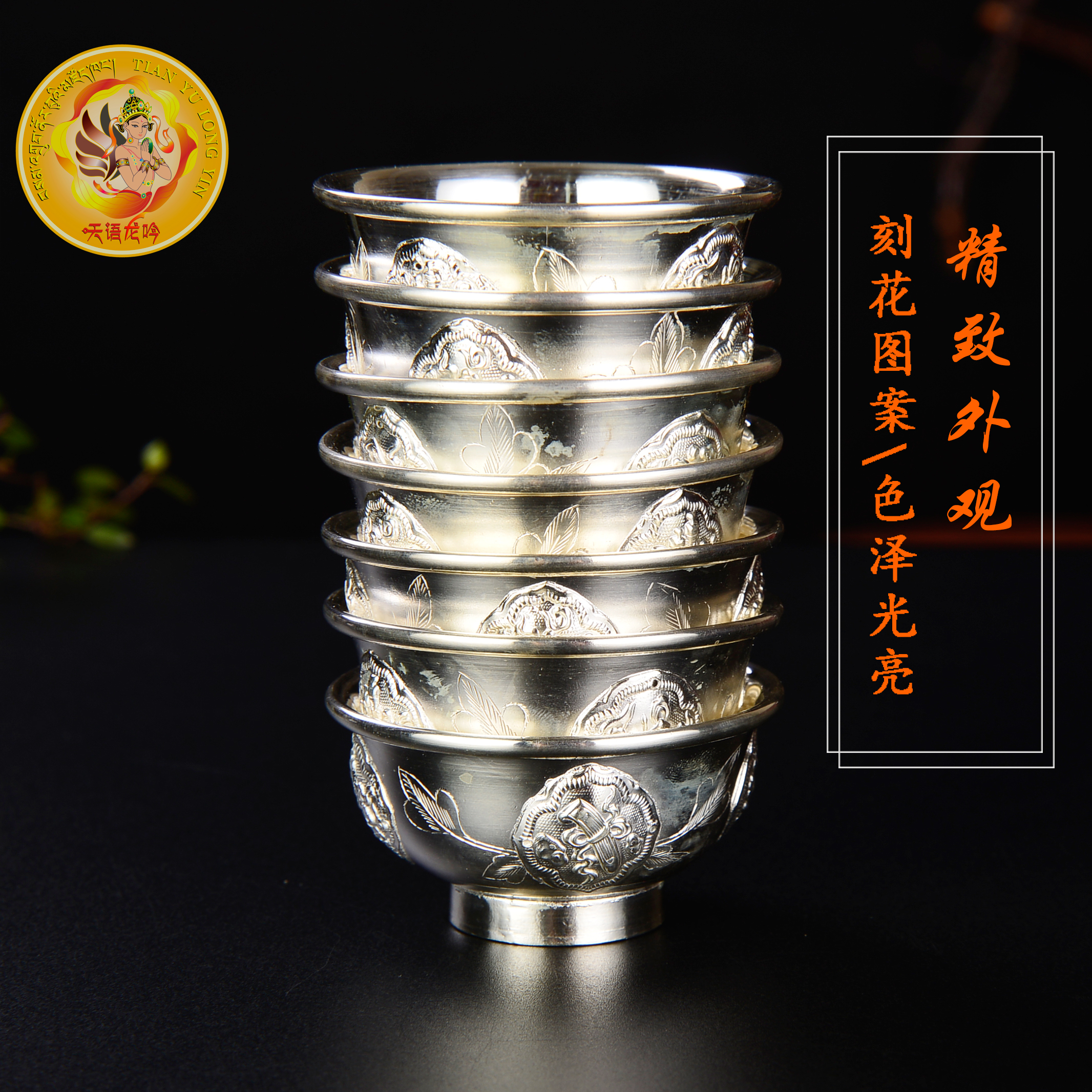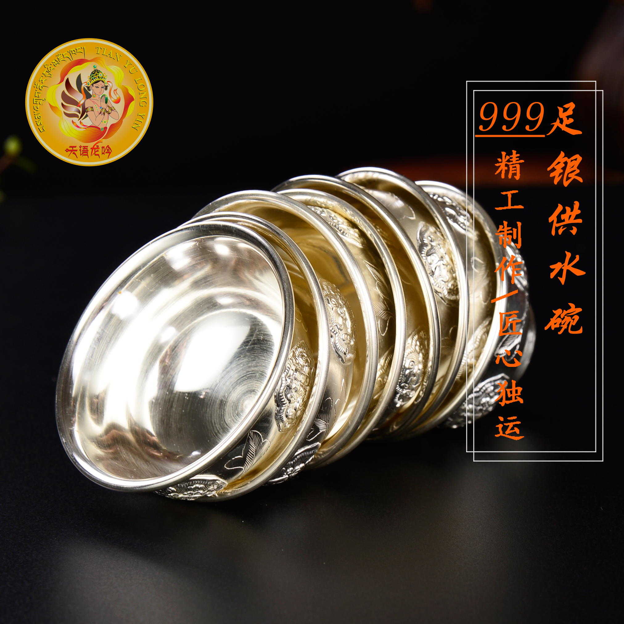 天语龙吟S999足银纯银浮雕七供杯净水碗供水碗净水碗6公分包邮价