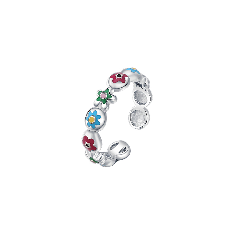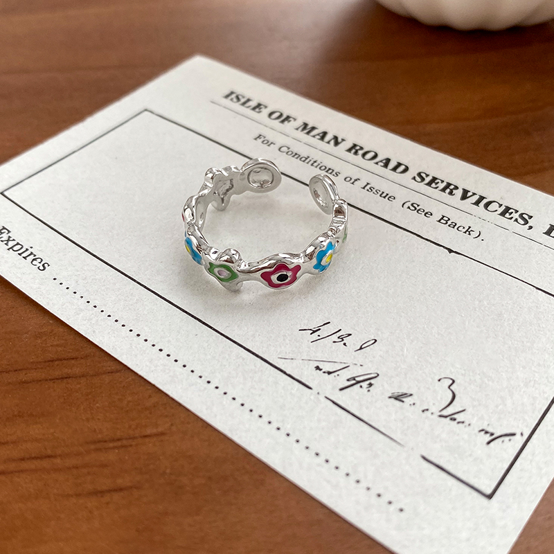 彩色花朵戒指女开口可调节小众独特食指戒指环复古高级感自律手饰