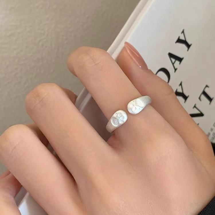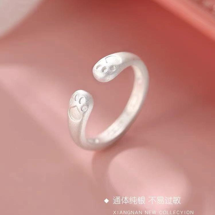 925纯银猫爪戒指女轻奢高级感素圈开口戒小众设计食指戒