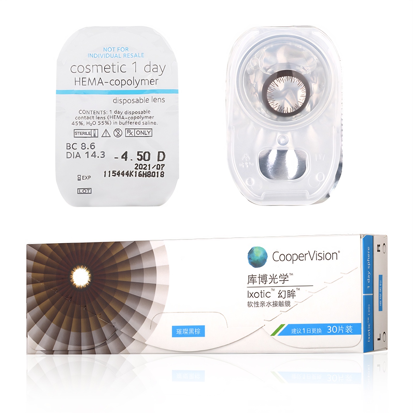 库博光学美瞳幻眸日抛彩色隐形近视眼镜30片装大小直径官方正品