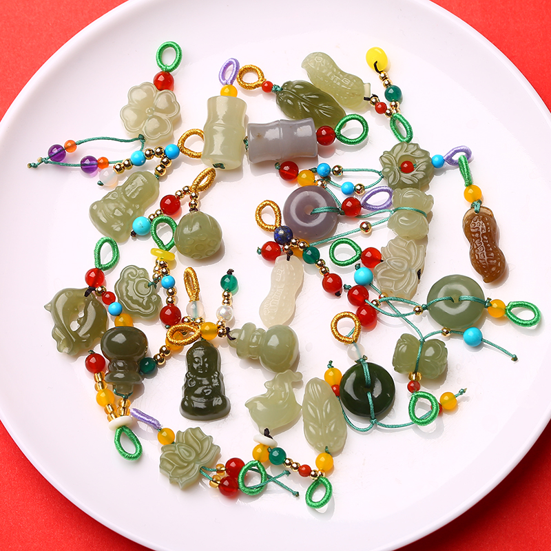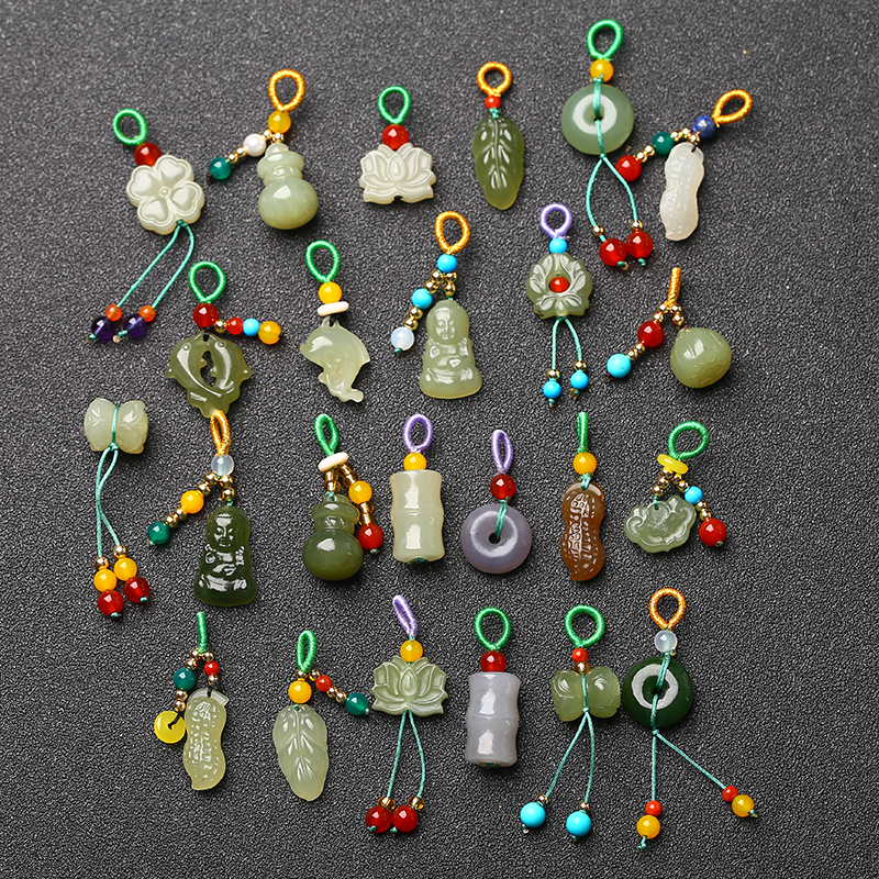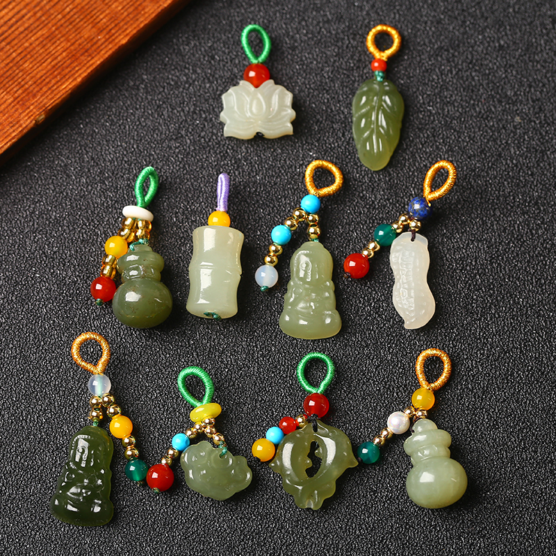 现货速发和田玉雕刻吊坠手链小配件小滴溜配饰莲蓬如意背云平安扣