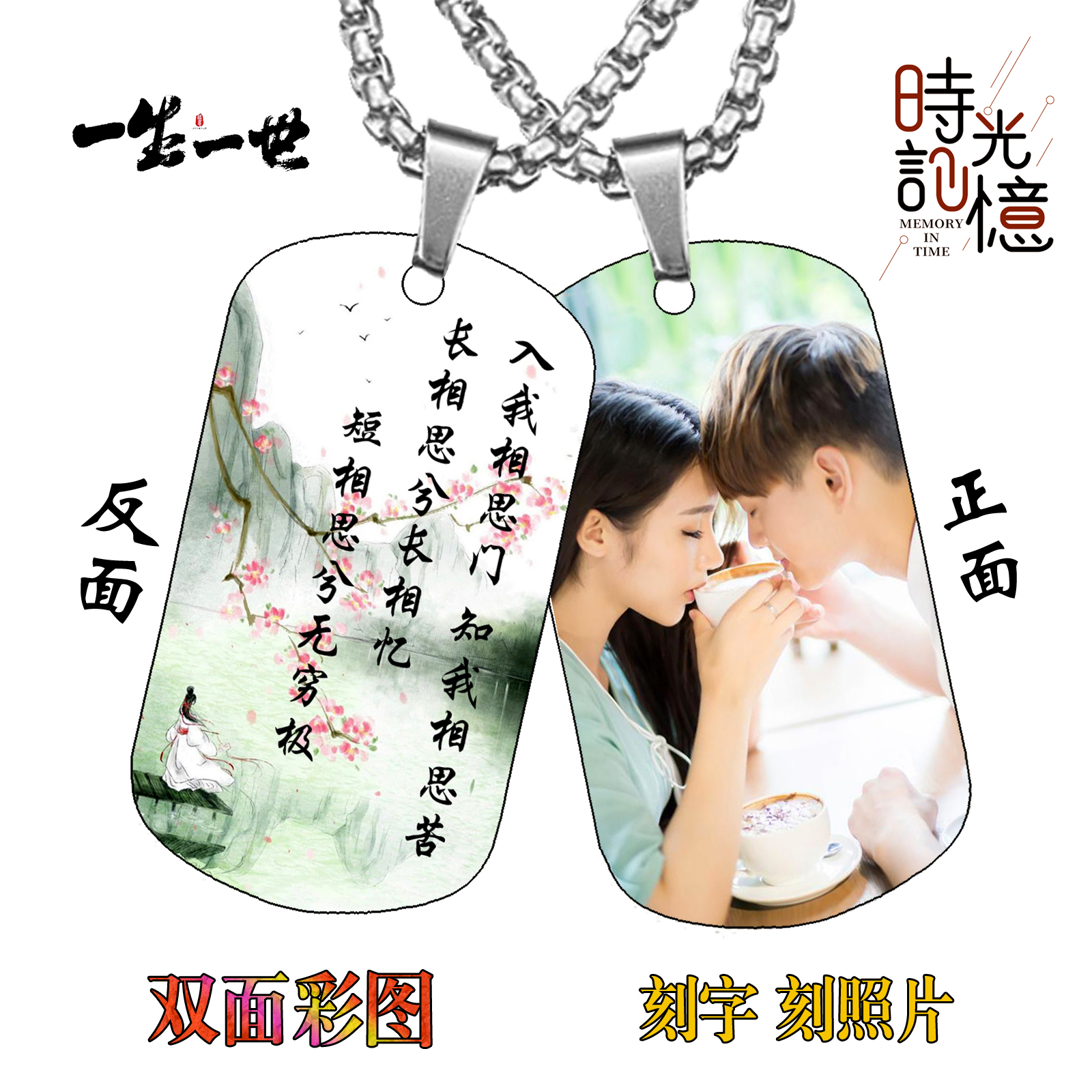 2025双面彩色照片刻字方牌吊坠来图定制钛钢项链挂件情人节礼物