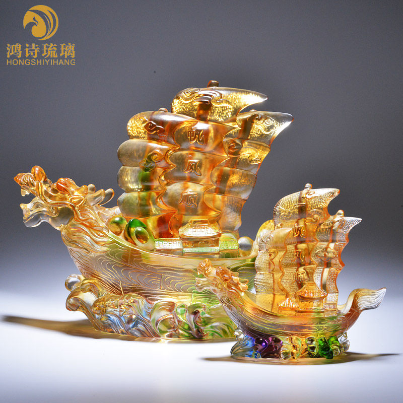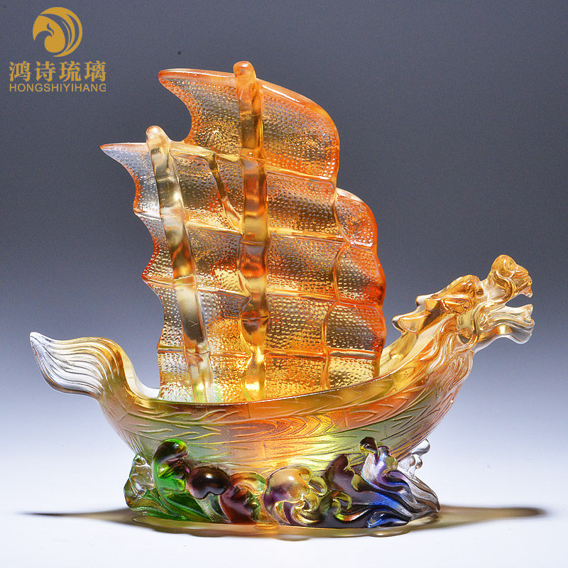 开业礼品一帆风顺帆船摆件 招财 家居客厅乔迁新居高档琉璃工艺品