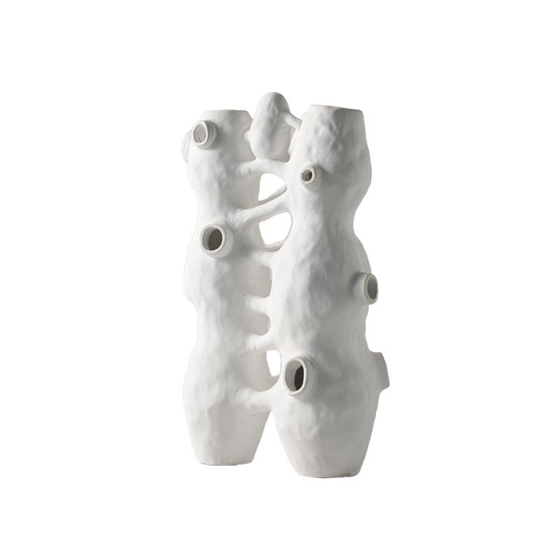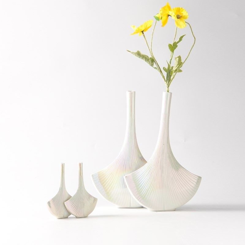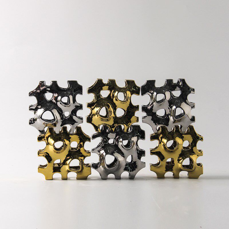 简约创意陶瓷异形花器装饰品几何镂空拼图银杏叶花瓶摆件高脚花盆