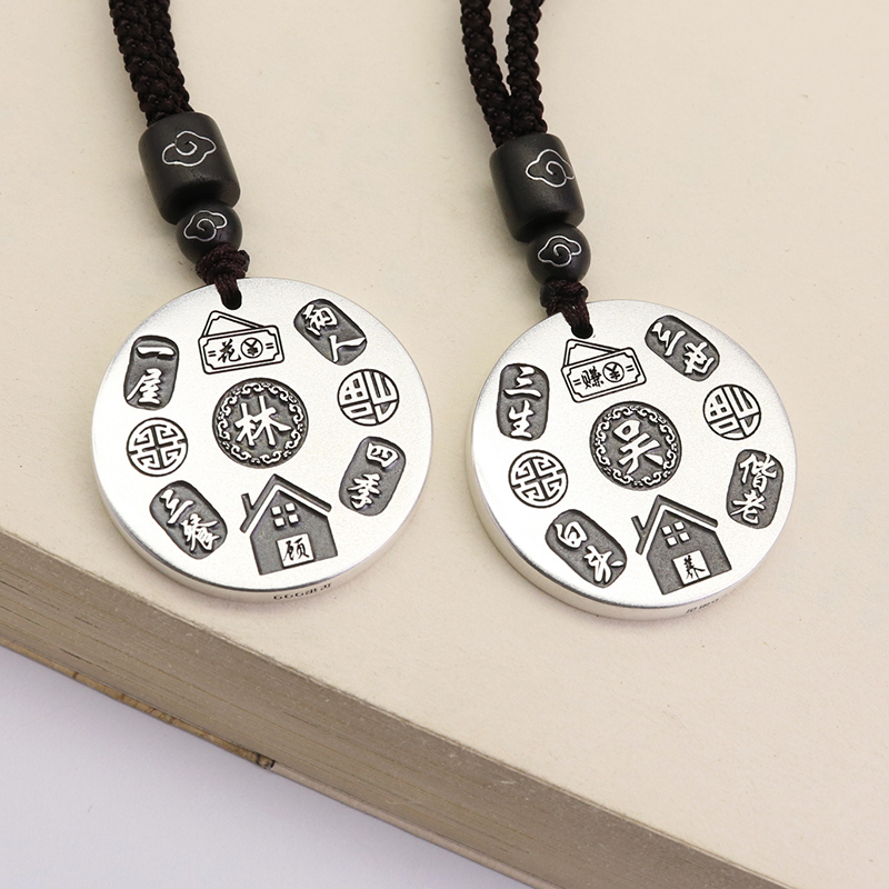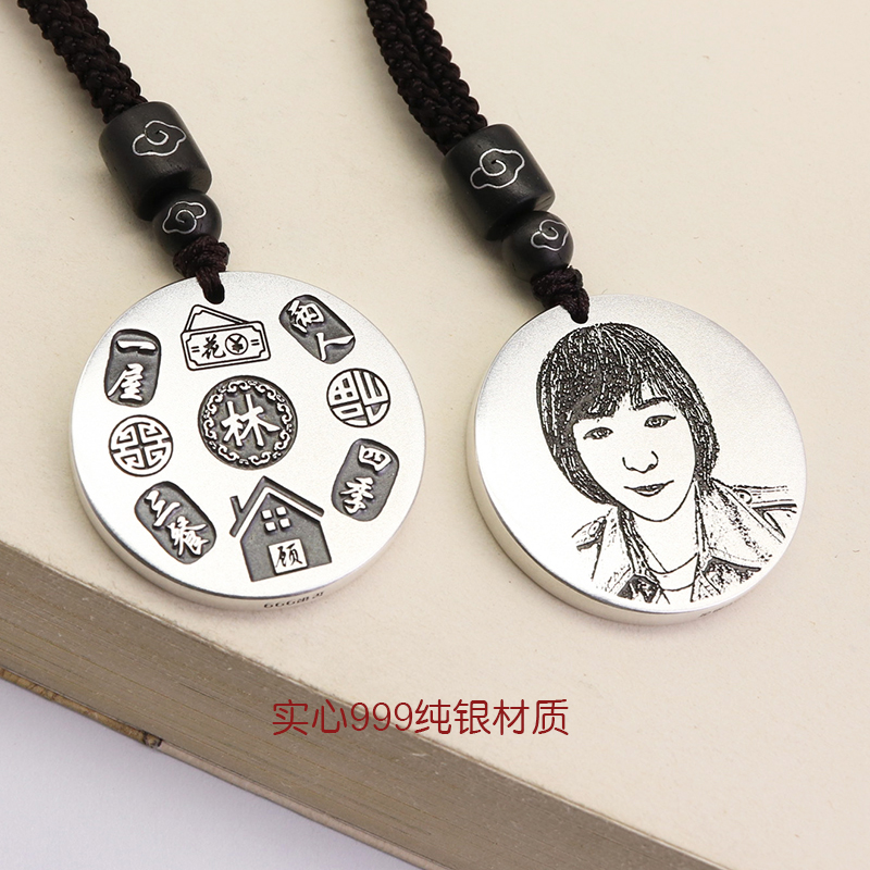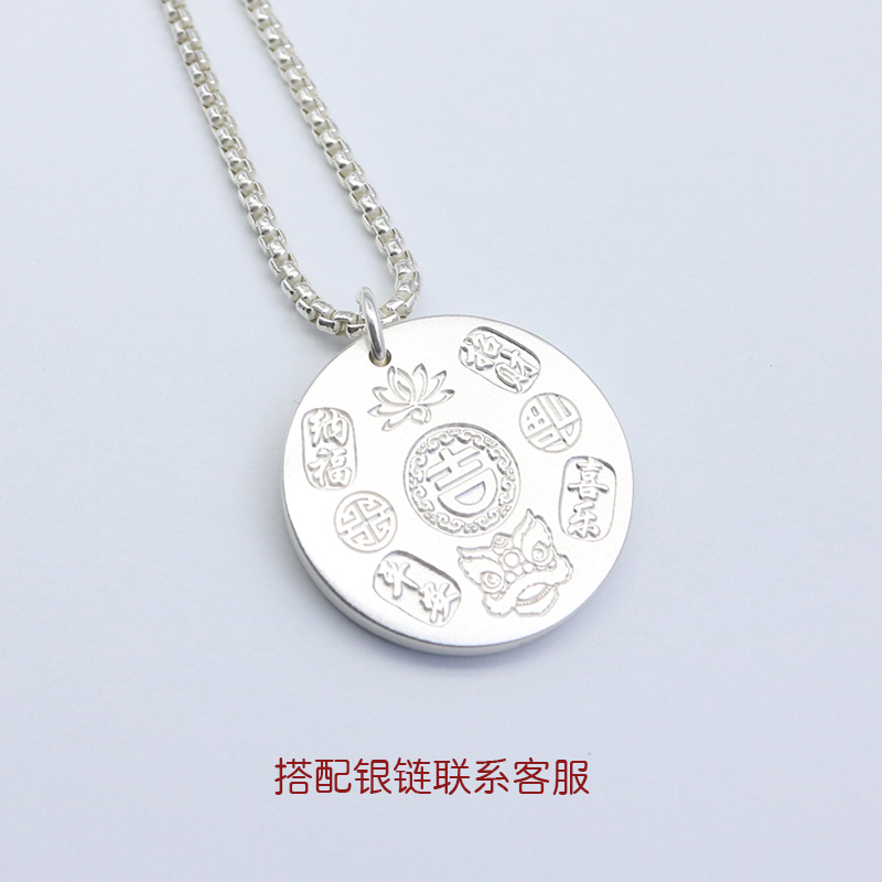 定制刻字999纯银情侣吉言吊坠男女宝宝婴儿童足银项链情人节礼物